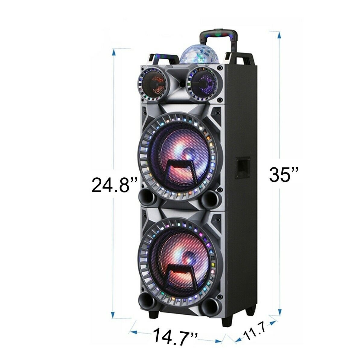 Dual 10" Rechargeable Speaker System with Wheel LED Lights Wireless Mic & Remote