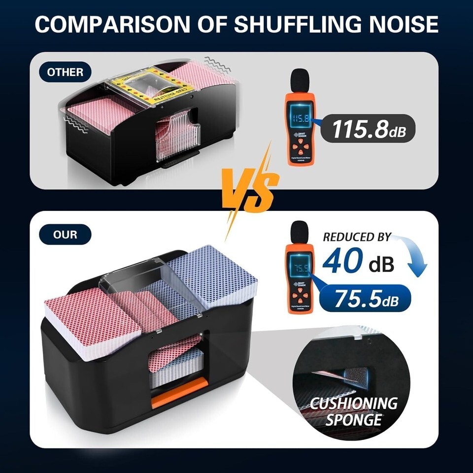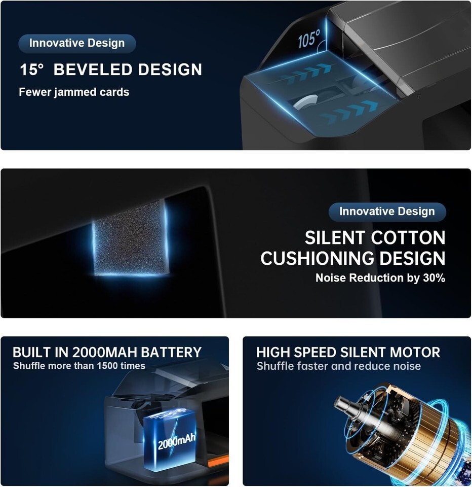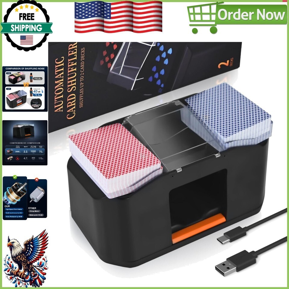 Dual-Deck Card Shuffler with Rechargeable 2000mAh Battery - For All Card Games