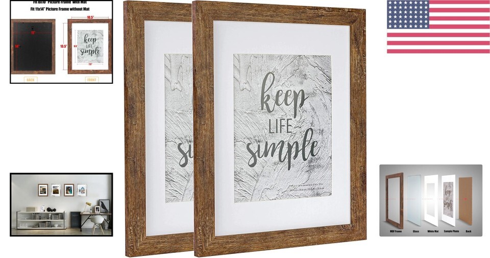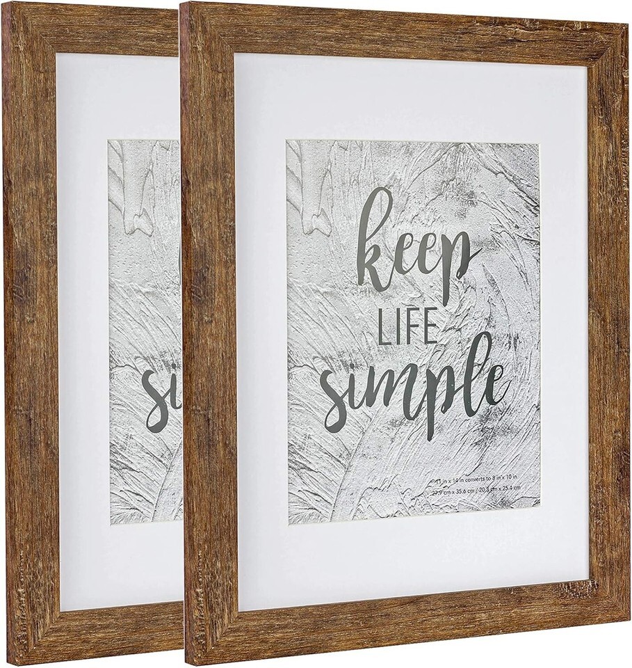 - Dual-Display 11x14 and 8x10 Picture Frames in Stylish Rotten Brown - 2 Pack