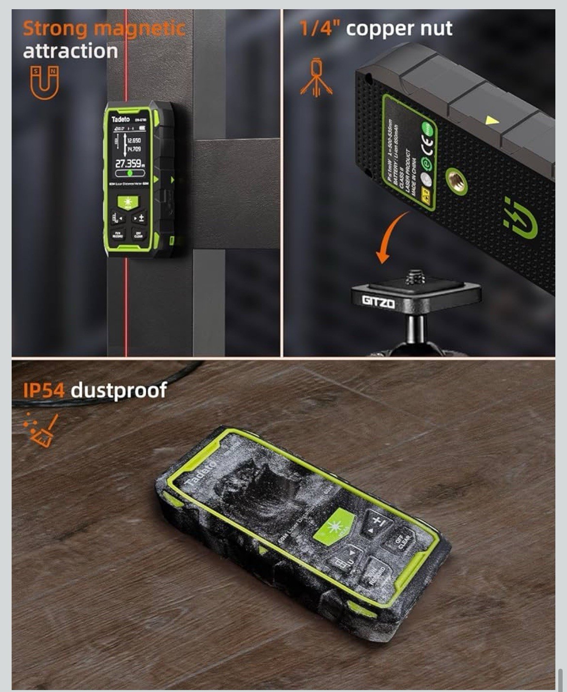 Tadeto Dual Laser Measuring Tool, 393FT/120M Bilateral Laser Measurement Tool Backlit LCD Display, Rechargeable Laser Measure with Ft/in/M Multiple Units Length/Area/Volume/Angle