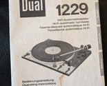 Dual Model 1229 Hi Fi Automatic Turntable Original Operating Instructions