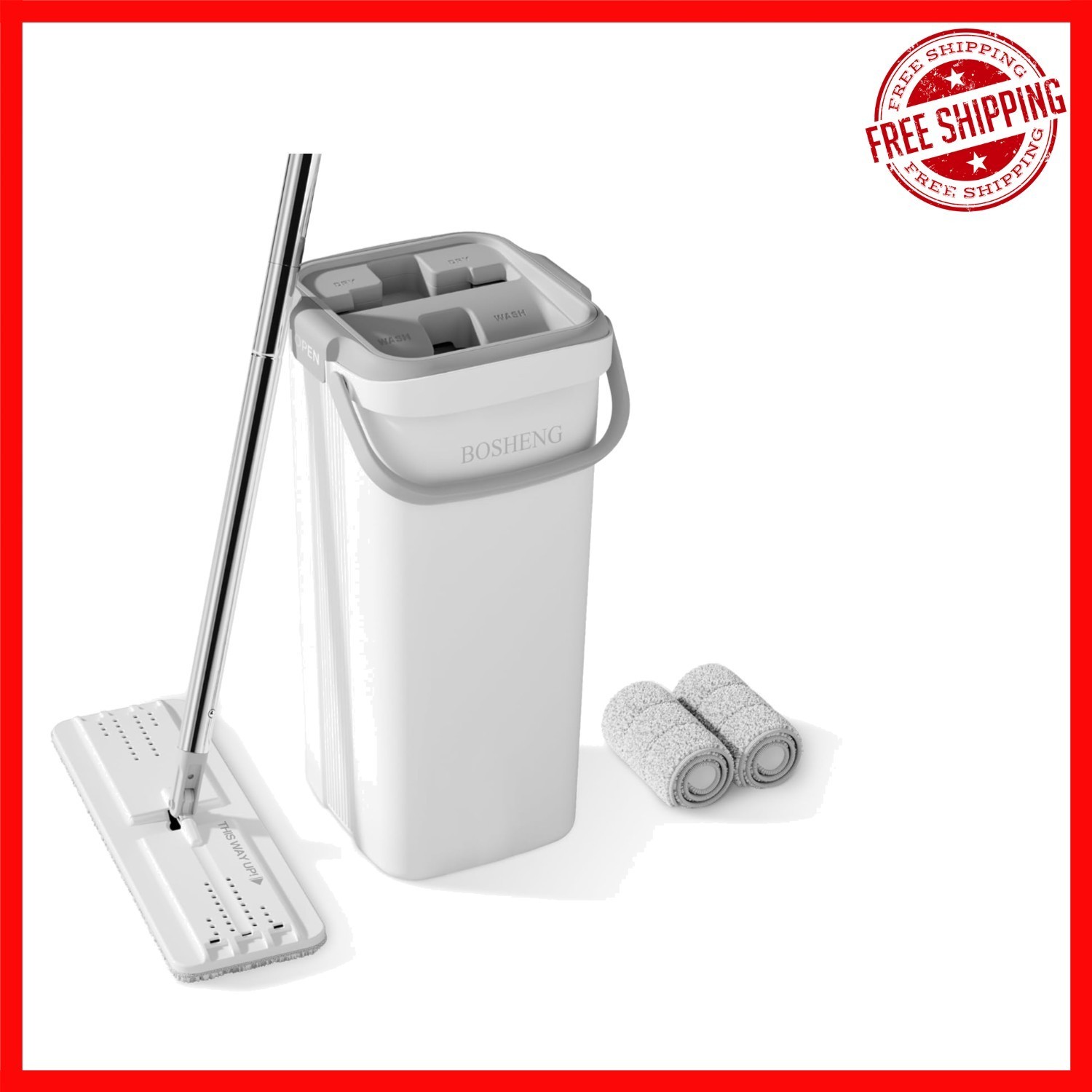 - Dual-Side Mop and Bucket Set with Self-Cleaning Feature & 2 Microfiber Pads