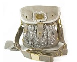 Dukas Gray Leather Sequined Canvas Gold Tone HW Shoulder Bag Crossbody Messenger