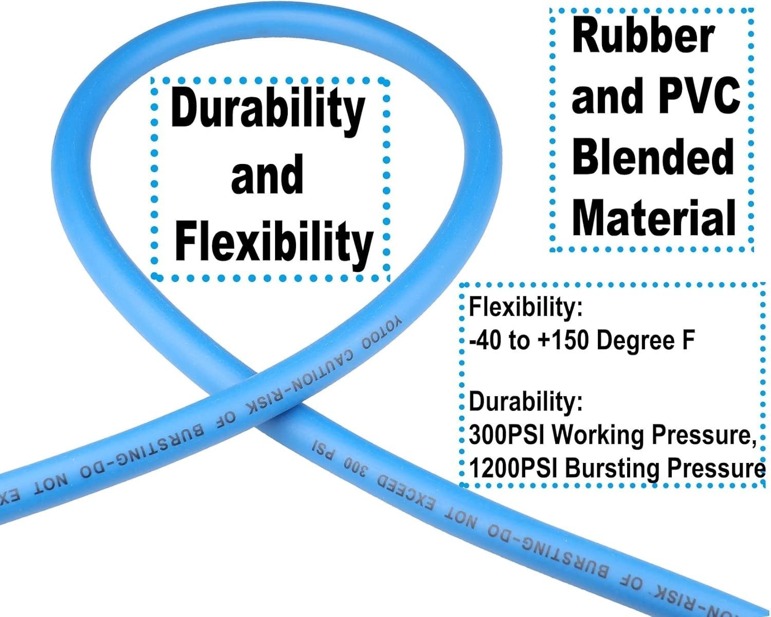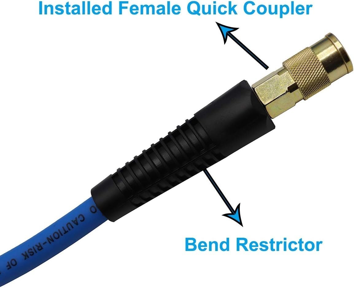 - Durable 1/4" x 50 ft Hybrid Air Hose with Bend Restrictors - Kink Resistance