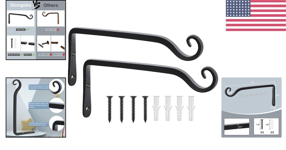 - Durable 10-Inch Wrought Iron Plant Hangers - Outdoor Hooks for Garden Decor