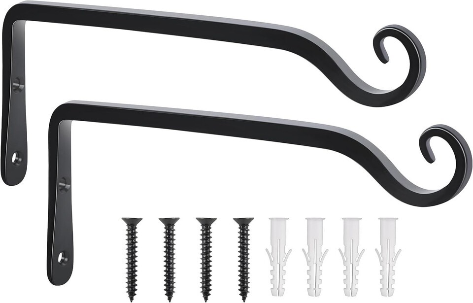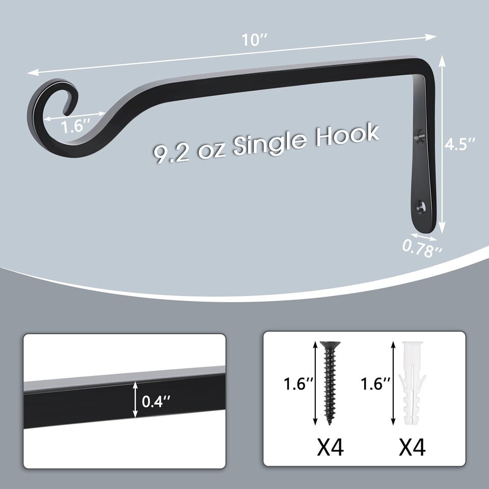 Ideal Size Elegant Design: Each plant bracket measures 10 inches in length and 4.5 inches in height, with a diameter of 0.4 inches. The included screws measure 1.6 inches. Its timeless black finish seamlessly complements both classical and modern aesthetics, making your garden appear elegant and inviting.