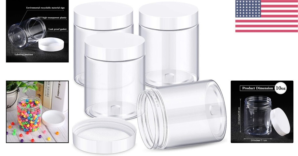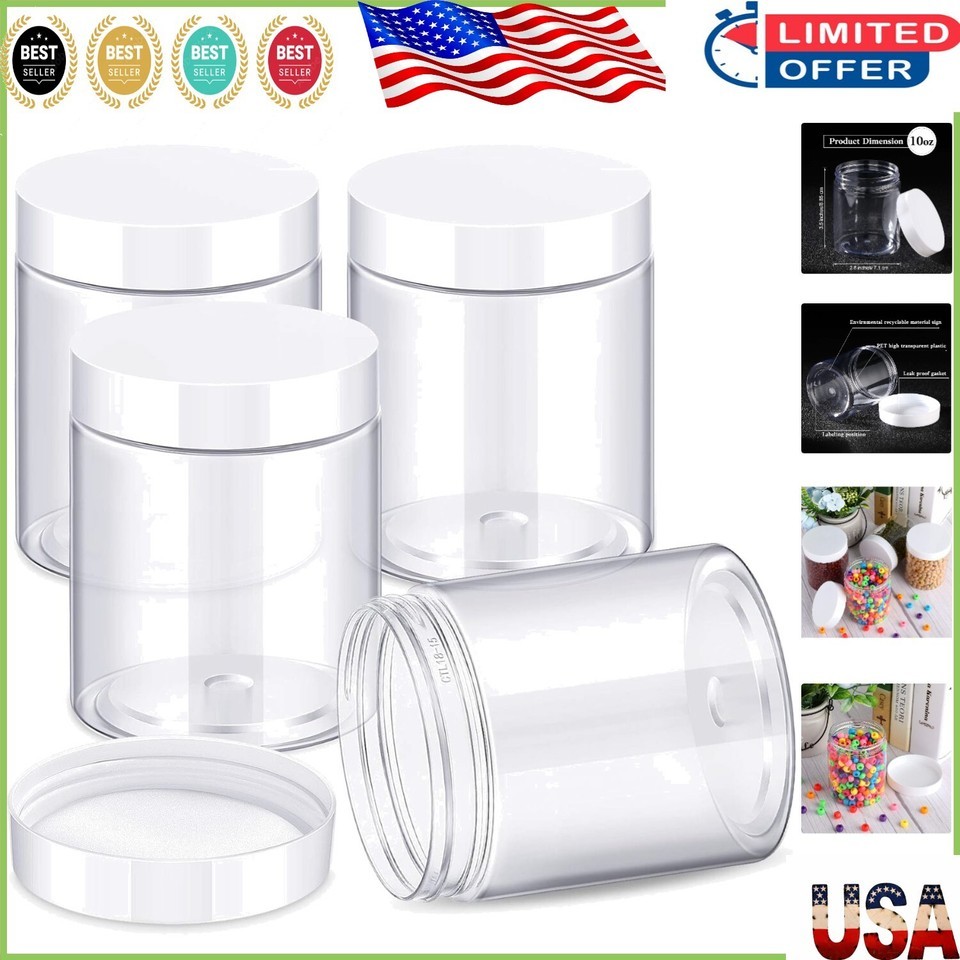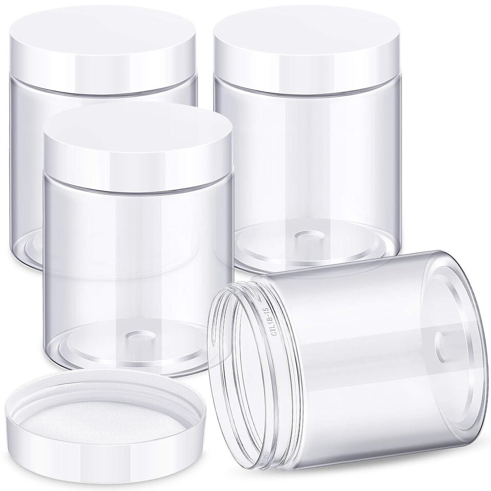 4 Pieces of Durable Plastic Jars with White Screw-On Lids