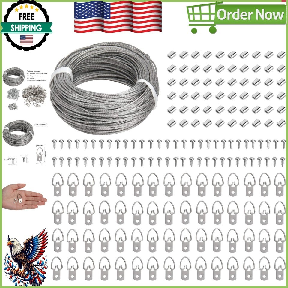 Durable 100ft Picture Hanging Wire Set with 60 D-Ring Hangers & Screws Included