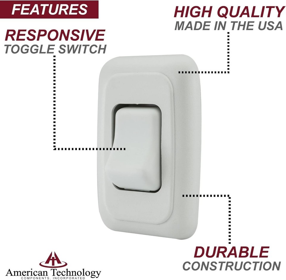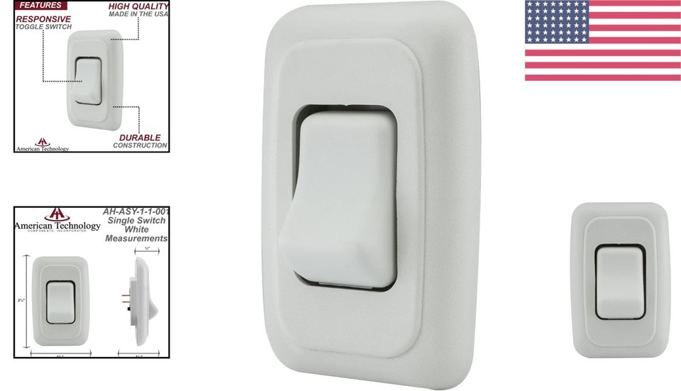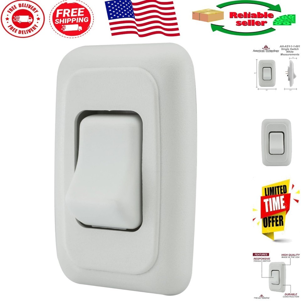 Durable 12-Volt Rocker Switch with Protection for Various Applications ? ? ? ? ? ? ? ? ? ? ? ? ? ? ? ? Durable 12-Volt Rocker Switch Experience the reliability and versatility of our Durable 12-Volt Rocker Switch, designed with protection for various applications. Perfectly suited for upscale settings, this switch exemplifies functionality without compromising style. Key Features: SPST design rated at 16 Amp @ 125-250 VAC, with functionality at 3/4 H.P. @ 125-250 VAC. Amp @ 14V (T) and 3 Amp @ 125V(L) ensure compatibility with a wide range of devices. Commonly utilized in upscale settings such as RVs, buses, horse trailer conversions, haulers, travel trailers, boats, and more. Elegant switch dimensions: 2 7/8'' (2.875'') L x 1 7/8'' (1.875'') W. Single cutout dimensions: 1 1/8?W x 1 1/2?L, ensuring a seamless installation experience. The package includes 1 switch plate and cover, proudly made in the U.S.A. Elegant Design: The white RV 1 gang 12-volt light switch boasts a cover that snaps over the switch base plate for a polished look, ensuring that installation and service are effortless. Overall size measures: 1-7/8" wide x 2-7/8" tall x 3/8" deep with a minimum hole cutout size of 1-1/2" tall x 1-1/8" wide. Why Choose Our Rocker Switch? Elevate your electrical installations with our Durable 12-Volt Rocker Switch. Beyond practicality, it offers robustness for various applications while maintaining a sophisticated appearance. This switch is the perfect addition to any vehicle or vessel where elegant functionality is required. Choose reliability and aesthetics. Order your Durable 12-Volt Rocker Switch today, and ensure your travel experience is nothing short of exquisite! Shipping Free Fast Shipping - We offer free shipping to most of the USA with a normal delivery time of 3-7 days. However, due to the current situation, additional delivery time (up to 3 weeks) may be required for some items. Alternative Carriers - We may use alternative carriers (e.g. USPS, FedEx, UPS, etc.) to ensure your package arrives safely and on time. Due to the use of multiple carriers, we are unable to provide a tracking number automatically. Handling Time - Orders are processed and shipped within 1-2 business days of receiving cleared payment. Shipping Restrictions - Shipping to Alaska, Hawaii, Puerto Rico, Guam, and other US territories may incur shipping charges or delivery restrictions. Please contact us before ordering, or your order can be refunded/cancelled. State Restrictions - There may be restrictions based on your state of purchase. For example, certain items may not be shipped to California due to state regulations. Contact for Tracking Updates - If you require tracking updates or have any concerns about the delivery of your order, please feel free to contact us, and we will be happy to assist you. Return 30-Day Hassle-Free Returns - We want you to be completely satisfied with your purchase. If you are not, you can return the item within 30 days of receiving it for a full refund or exchange. Easy Return Process - To start a return, simply contact us and we will provide you with a prepaid return shipping label and detailed instructions. Restocking Fee - There are no restocking fees for returns. However, the buyer is responsible for return shipping costs if the return is not due to a seller's error. Refund Processing Time - Refunds will be processed within 5 business days of receiving the returned item in its condition. Payment We accept all major credit cards, PayPal, and Apple Pay for your convenience. Your payment information is secure and encrypted to ensure a safe and seamless transaction. Please complete your payment within 3 days of purchase to avoid any delays in shipping. Feedback Your feedback is extremely important to us. We strive to provide the best products and customer service possible. If you are satisfied with your purchase, please take a moment to leave us a positive review. If you have any concerns or issues with your order, please contact us before leaving negative feedback. We are committed to resolving any problems and ensuring your satisfaction. Contact Us If you have any questions or concerns, please feel free to out to our customer support team. You can contact us through the messaging system. We are available Monday to Friday, 9:00 am to 5:00 pm EST, and we will do our best to respond to your inquiry within 24 hours. Buy it now and enjoy a pleasant shopping experience! To Control: Lights,Pumps,Fans,Vents Placement on Vehicle: Center Console,Dashboard,Door Features: Durable,Weatherproof OE/OEM Part Number: 12-Volt On-Off Switch Type: Rocker Switch Color: White