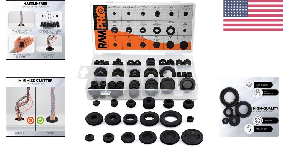 Primary image for Durable 125pc Rubber Grommet Kit - 18 Sizes for Electrical & Automotive Needs