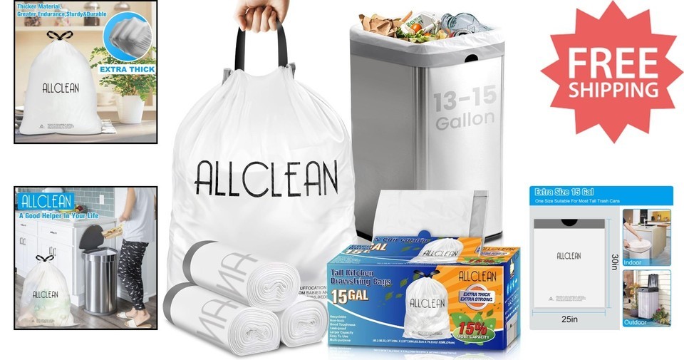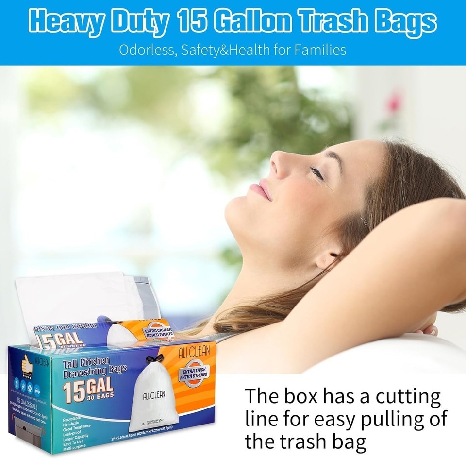 - Durable 15 Gallon Puncture-Resistant Trash Bags - Perfect for Kitchen & Lawn
