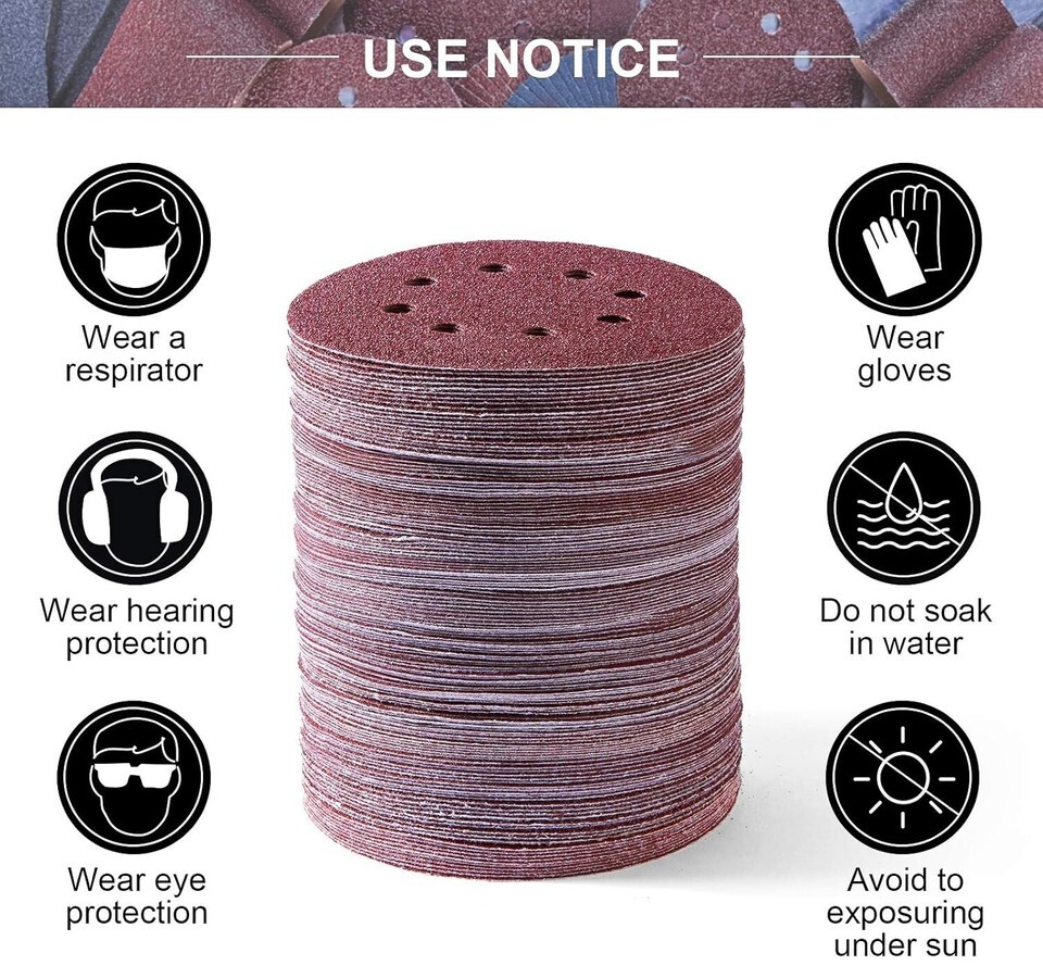 SUPERIOR DURABILITY: Made from anti-clogging aluminum oxide abrasive, these sandpaper discs are crafted for long-lasting performance. Pre-punched with 8 holes for efficient dust extraction.