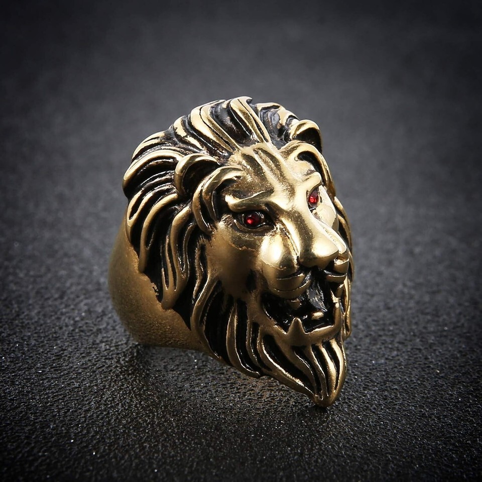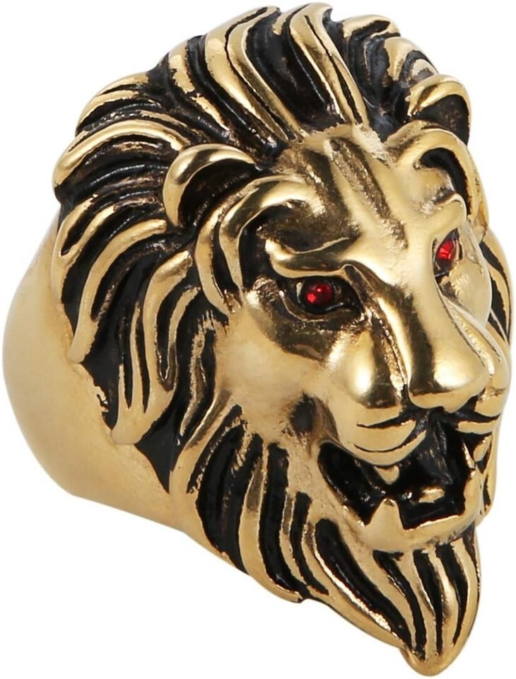 Primary image for Durable 316L Stainless Steel Lion Ring with Red Eyes - Multi-Color Biker Design