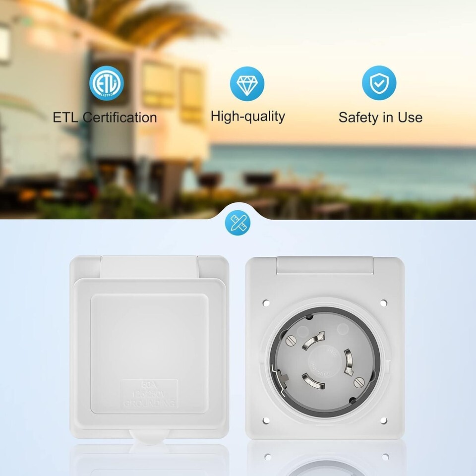 - Durable 50 Amp RV Shore Power Inlet Plug - Safe, Reliable, and Easy to Install