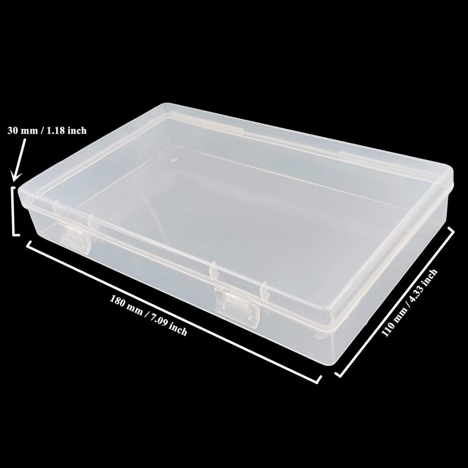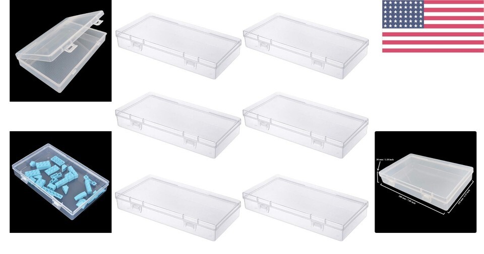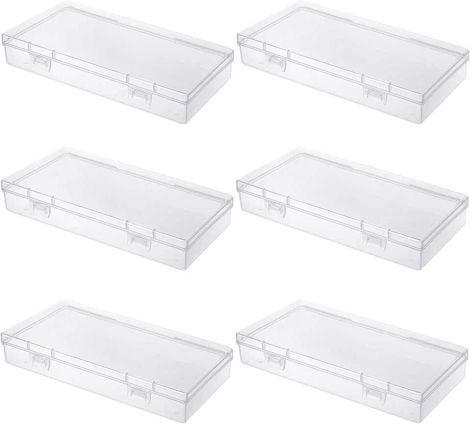 Contents: Includes a total of 6 rectangular clear plastic boxes.