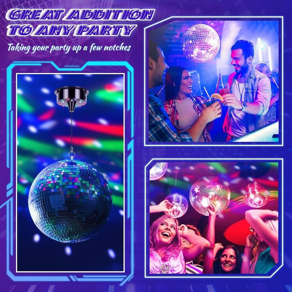 - Durable 8" Hanging Mirror Disco Ball with 6RPM Motor for Parties and Weddings