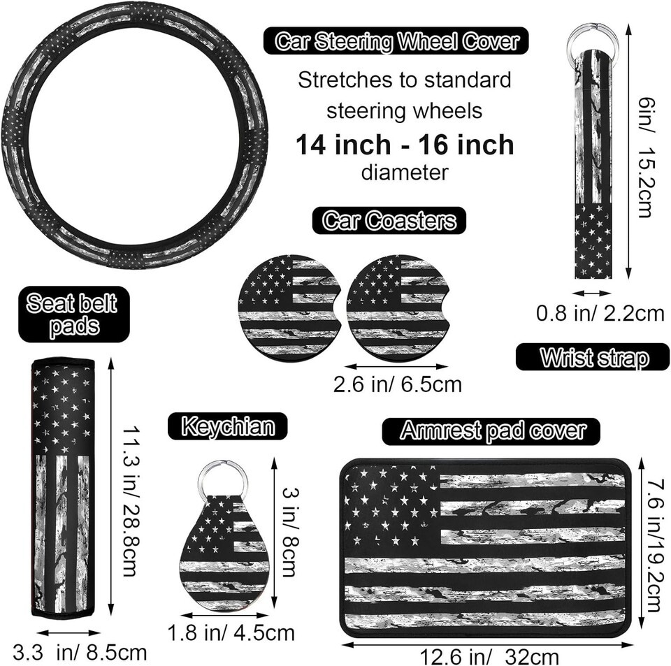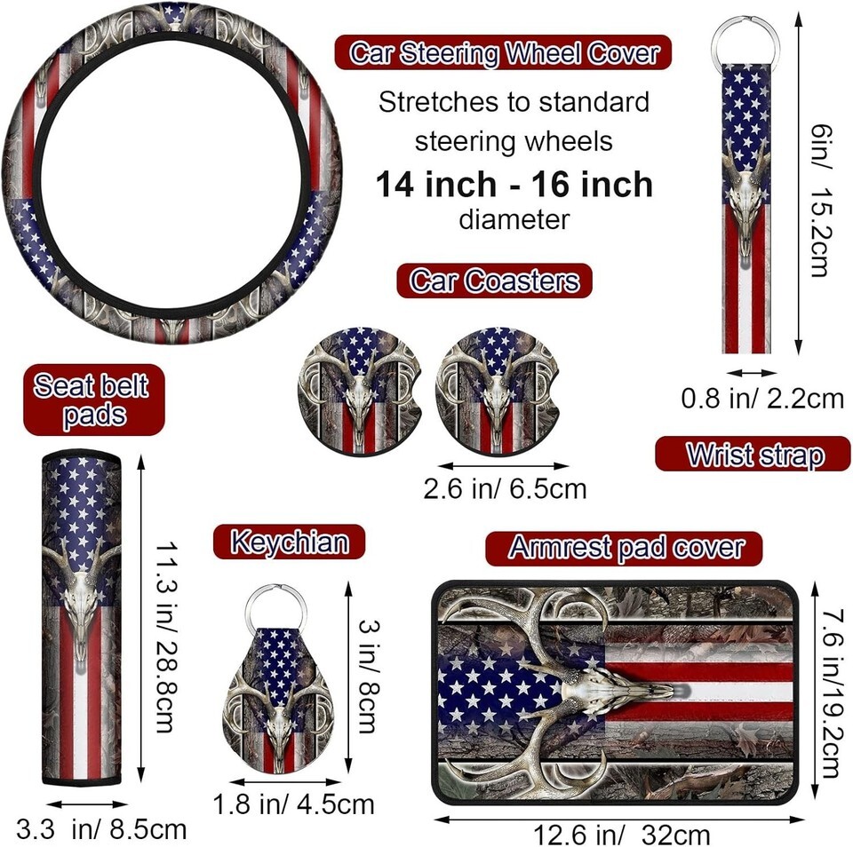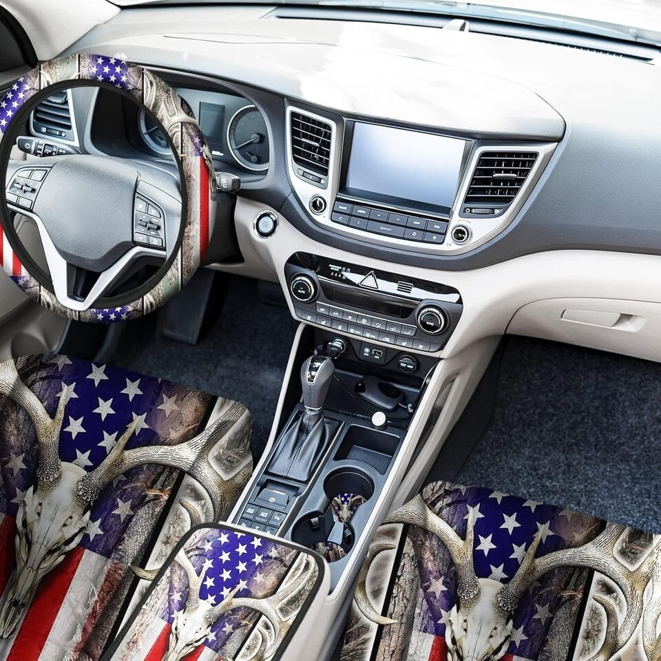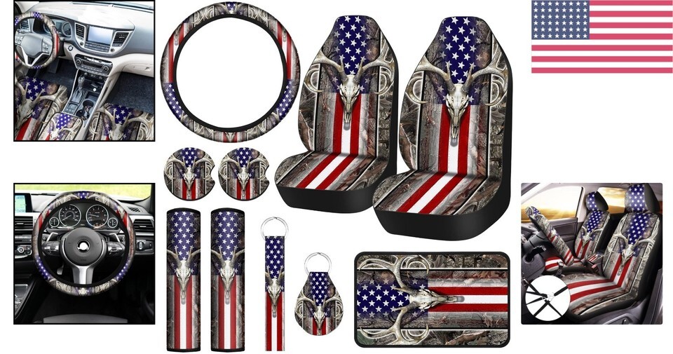 - Durable American Flag Deer Skull Camo Car Accessory Set – 10-Pieces Included