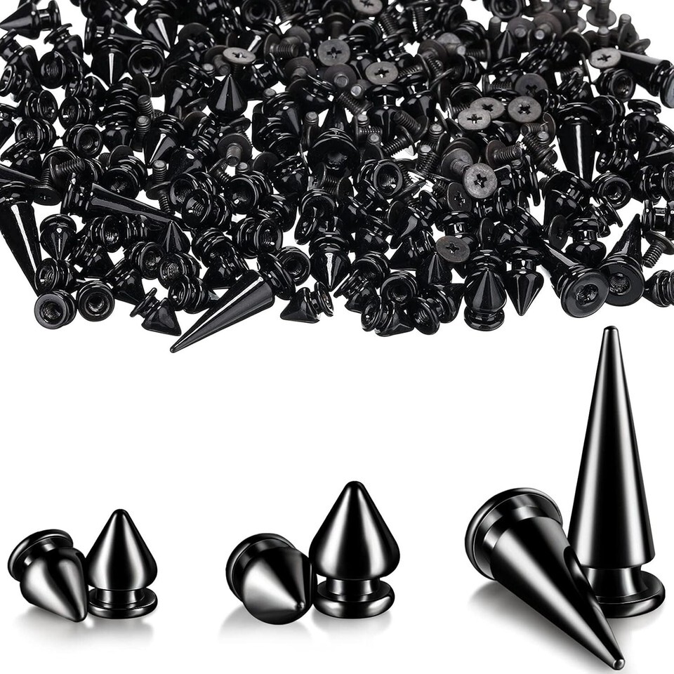 Elevate your crafting experience with our Durable Black Nickel Cone Spikes and Screwback Rivets. Designed with elegance and functionality, these versatile accessories are perfect for adding a touch of punk flair to your cherished items. Made from high-quality zinc alloy, these spikes are built to withstand the test of time, ensuring that your creativity shines through without compromising on quality.