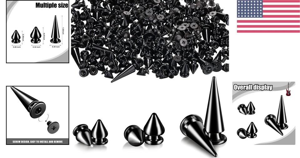 Durable Black Nickel Cone Spikes and Screwback Rivets
