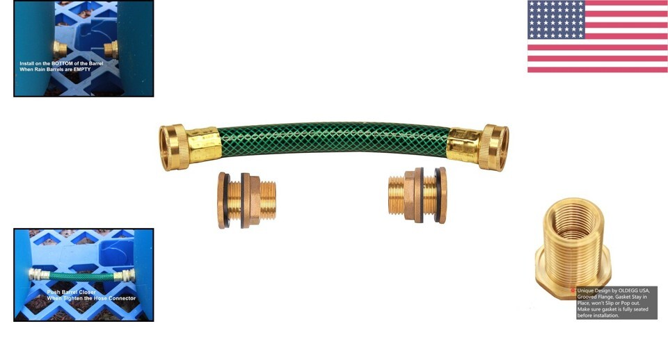 - Durable Brass Bulkhead Fitting Set for Rain Barrel with 8" Hose Connector