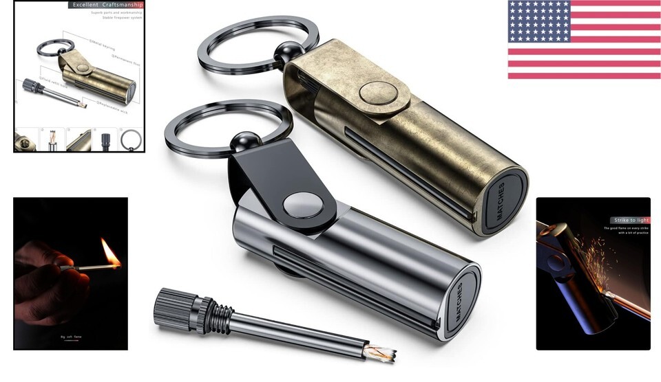 - Durable Bronze Permanent Match Lighter Keychain - Ultimate Fire Starter Duo
