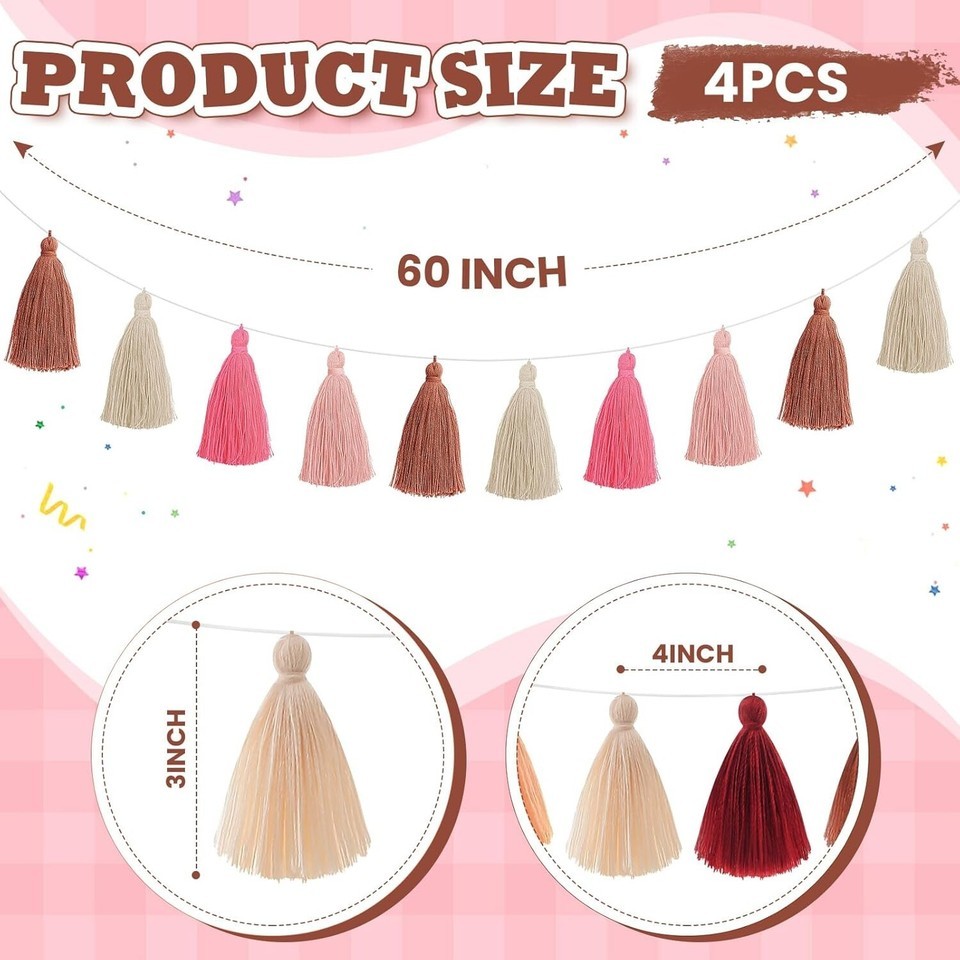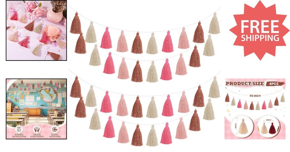 Transform your space with our 4-piece classroom tassel garland set, featuring 48 vibrant tassels to create a warm and inviting atmosphere. Made from high-quality cotton thread, these garlands offer a soft, smooth touch and are durable for repeated use. Each garland spans approximately 47.1 inches with tassels spaced evenly at 4.2 inches apart and measuring about 3.1 inches in height, ensuring a harmonious display. Perfect for a variety of occasions including Thanksgiving, fall-themed parties, Halloween, weddings, birthdays, outdoor events, and photo backdrops. Decorate your home by hanging them across mantels, walls, windows, or doorways, or display them on bulletin boards to add festive charm. Elevate your celebration with these versatile and stylish decorations! To ensure fast and reliable delivery, we work with multiple fulfillment partners and suppliers. Depending on availability and location, your order may ship from different warehouses or arrive in packaging that varies from item to item. Tracking details are typically provided shortly after shipment, and customer satisfaction remains our top priority. Please note that due to carrier policies and regional regulations, certain items may not be eligible for delivery to specific states or territories.
