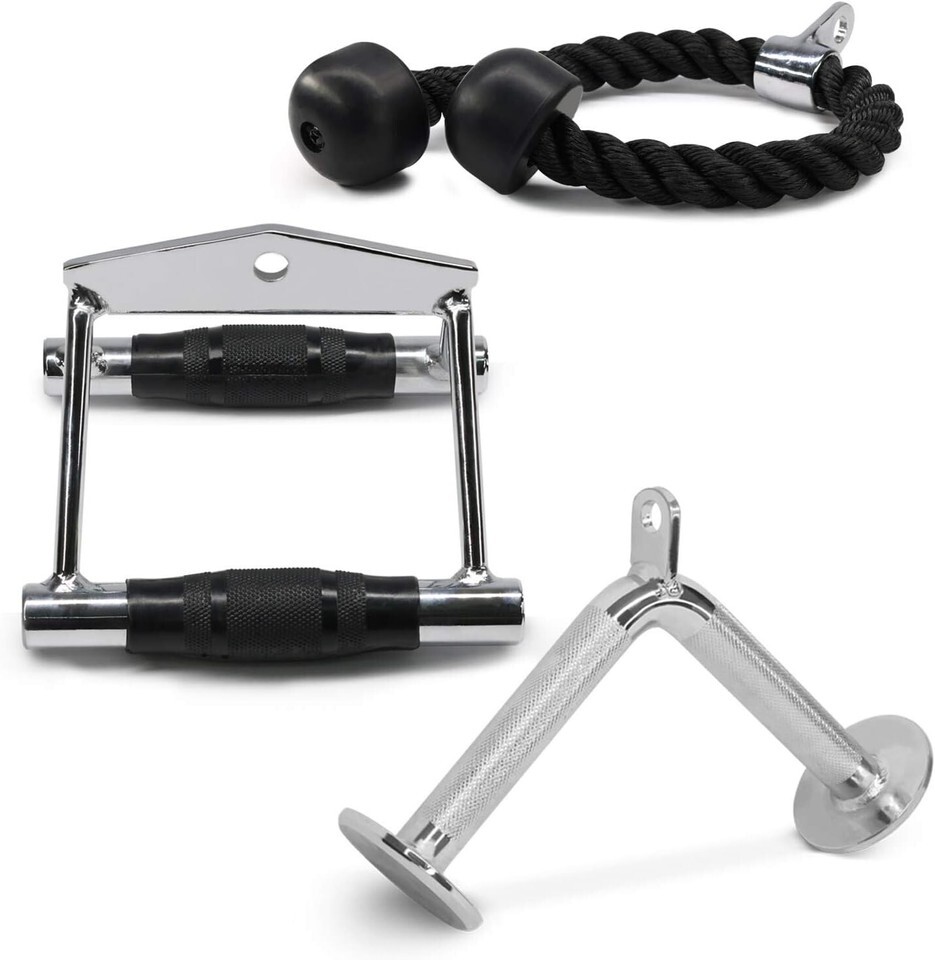 Transform your fitness routine with this comprehensive, high-quality trio of gym equipment. Designed for those who are serious about elevating their workouts, each piece is engineered to support intense training while ensuring maximum safety and comfort. Whether you're sculpting your upper body with the Tricep Rope or building back strength with the Double D Row Handle, this set is built to last, helping you peak performance at every rep.