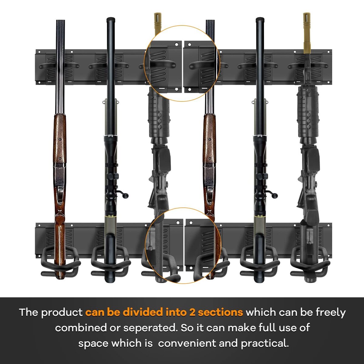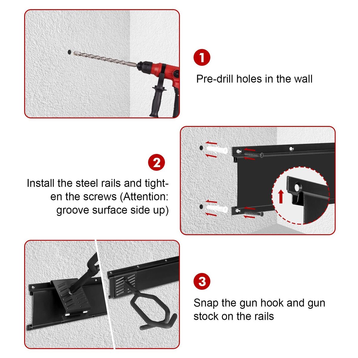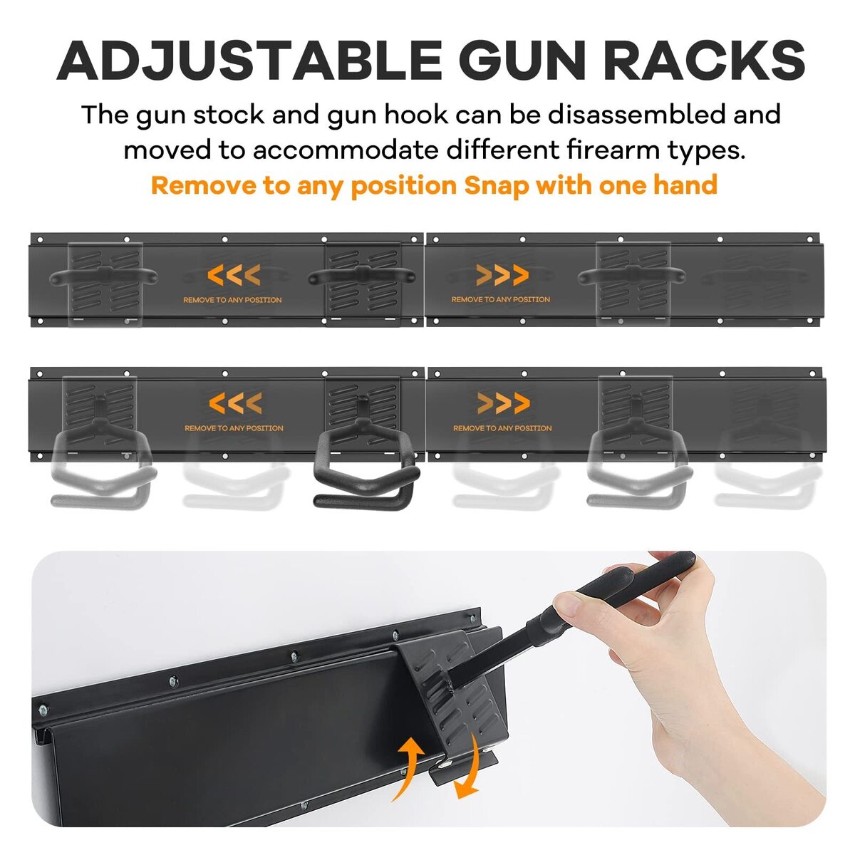 ?EASY INSTALLATION?Install the steel rails individually to your desired height before installation, and then install the gun hooks on the rails, just use a level to ensure a perfect fit.