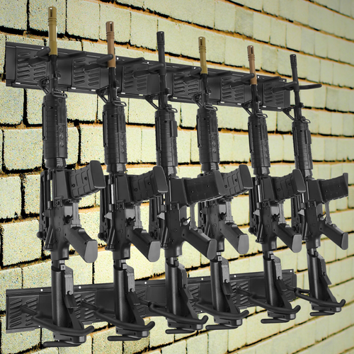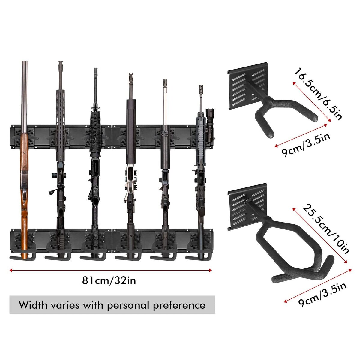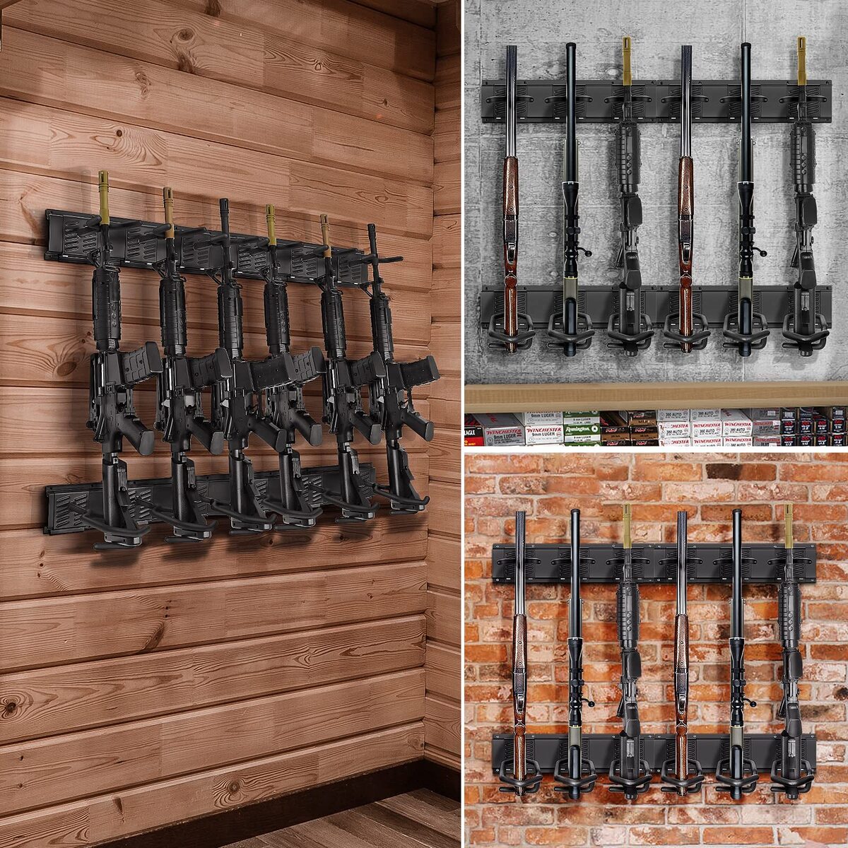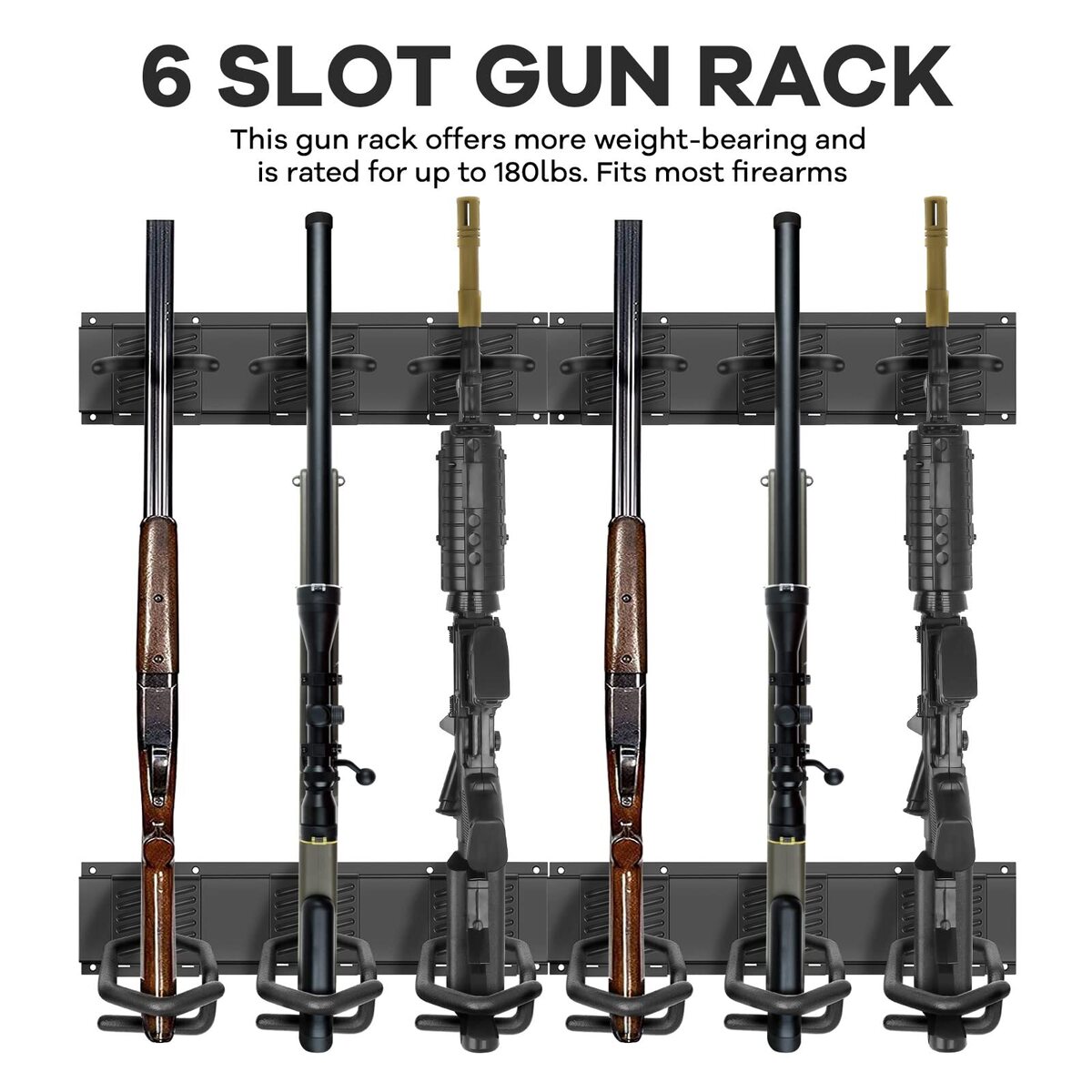 ?ULTRA DURABLE?Crafted with 100% Heavy Duty Steel to be Sturdy and Weather Resistant. The gun rack hold a total of 6 rifles, shotguns. Engineered to mount side by side.