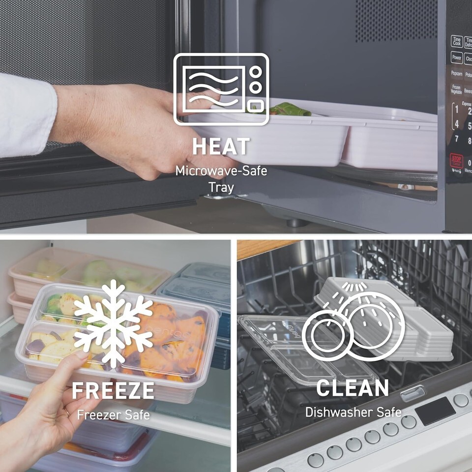 Embrace a healthier lifestyle with America?s leading choice in meal prep. This exquisite 20-piece set includes ten thoughtfully designed 3-compartment trays along with ten custom-fit lids, ideal for sealing in freshness. Whether it's breakfasts, lunches, dinners, or leftovers, enjoy nutritious, gourmet meals even when on the go.