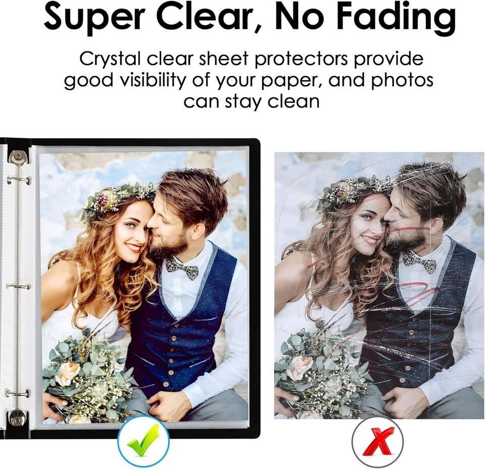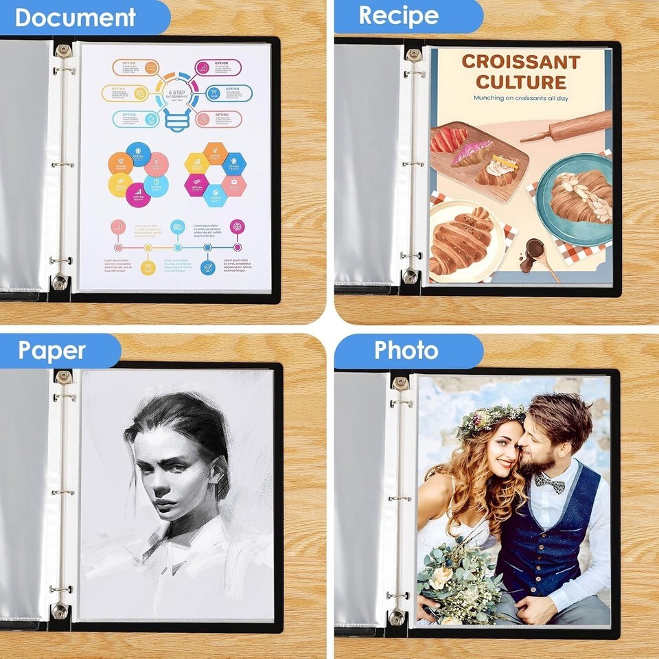Durable Polypropylene 3 Ring Binder Sleeves - 100 Clear Top Loading Protectors