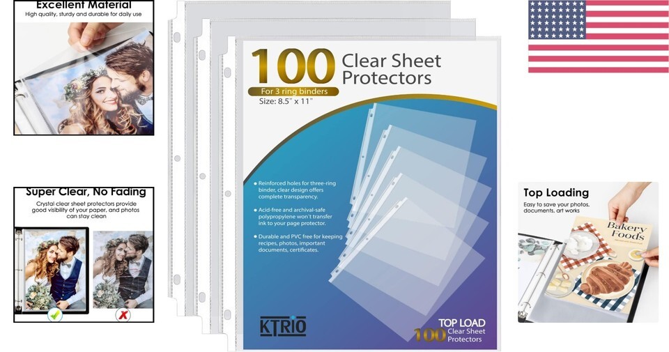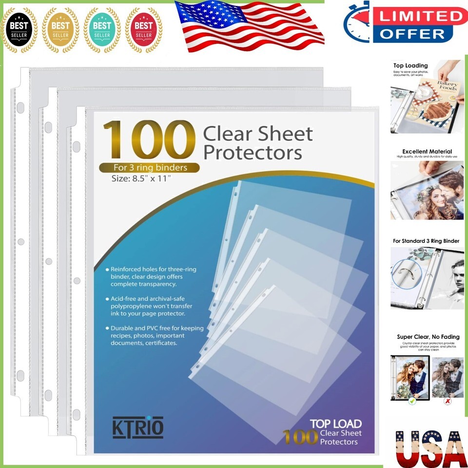 Primary image for Durable Polypropylene 3 Ring Binder Sleeves - 100 Clear Top Loading Protectors