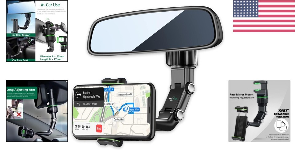 Durable Rearview Mirror Phone Holder for Smartphones - Adjustable & Secure Fit