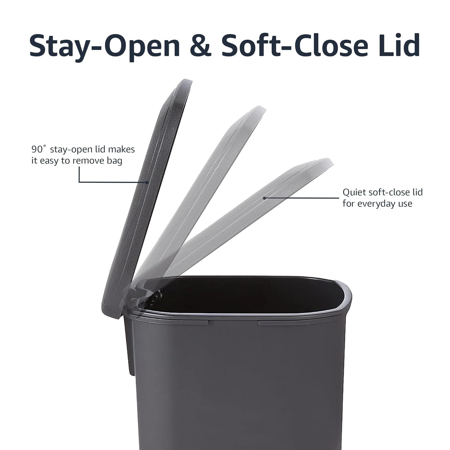 Durable Rectangular Bathroom Trash Can, 6L ? Hands-Free with Quiet Close Lid
