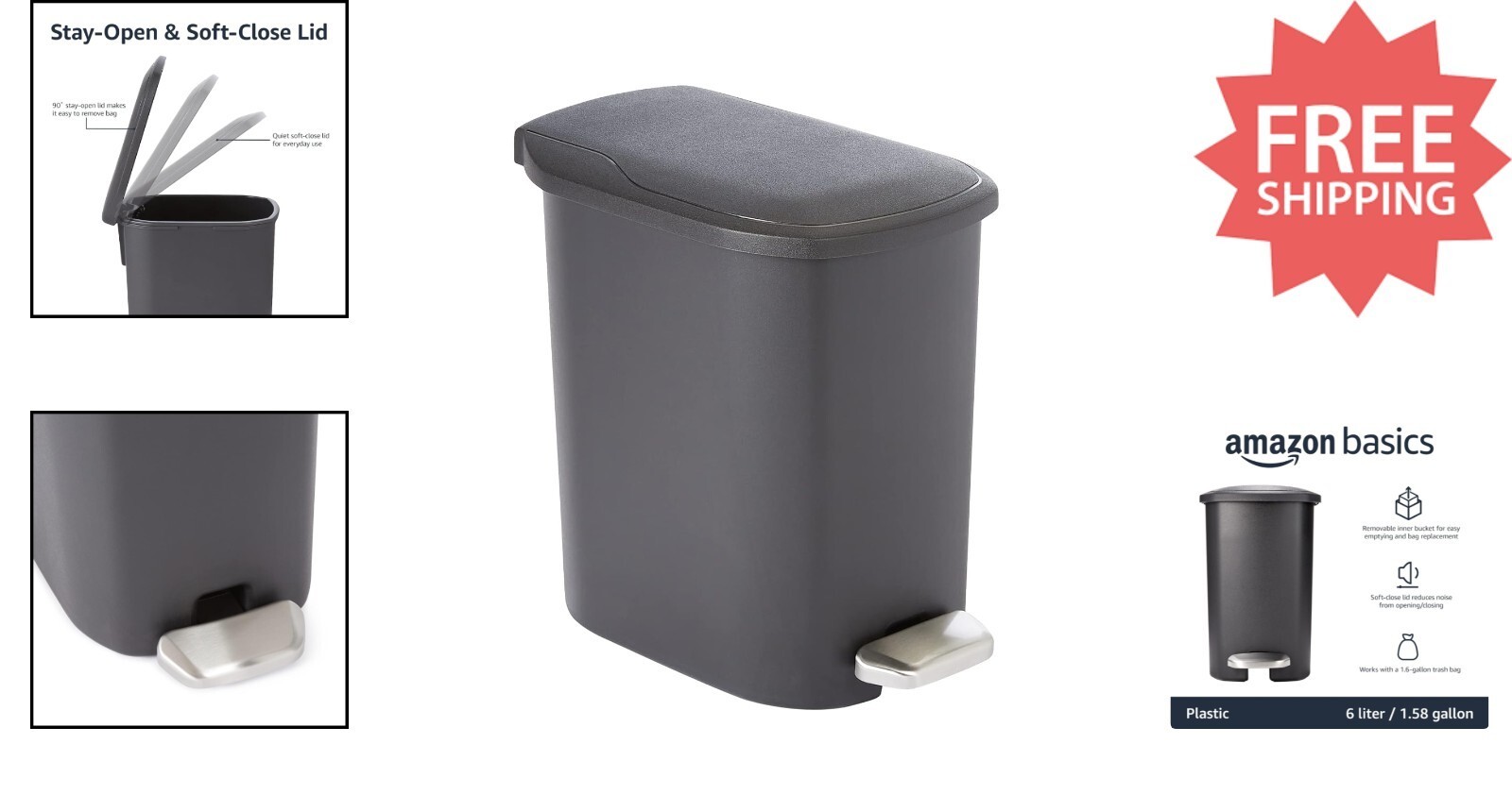 Discover the perfect compact solution for your space with our 6-liter black trash can, ideal for bathrooms or small areas. Designed with user convenience in mind, it features a reliable trash bag holder, a removable inner bucket for effortless emptying, and a durable dent-proof plastic construction. The anti-slip base ensures stability, while the steel foot pedal enables hands-free, noise-free lid operation with a soft-close mechanism. Measuring 12.2 x 7.1 x 11 inches, this trash can combines practicality with durability for everyday use.