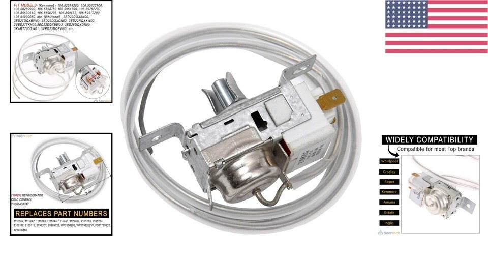 - Durable Refrigerator Cold Control Thermostat Replacement for Whirlpool, Kenmore