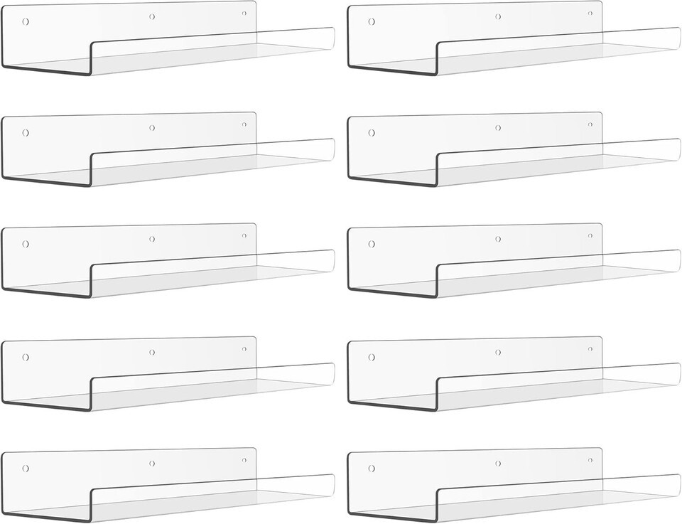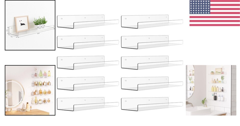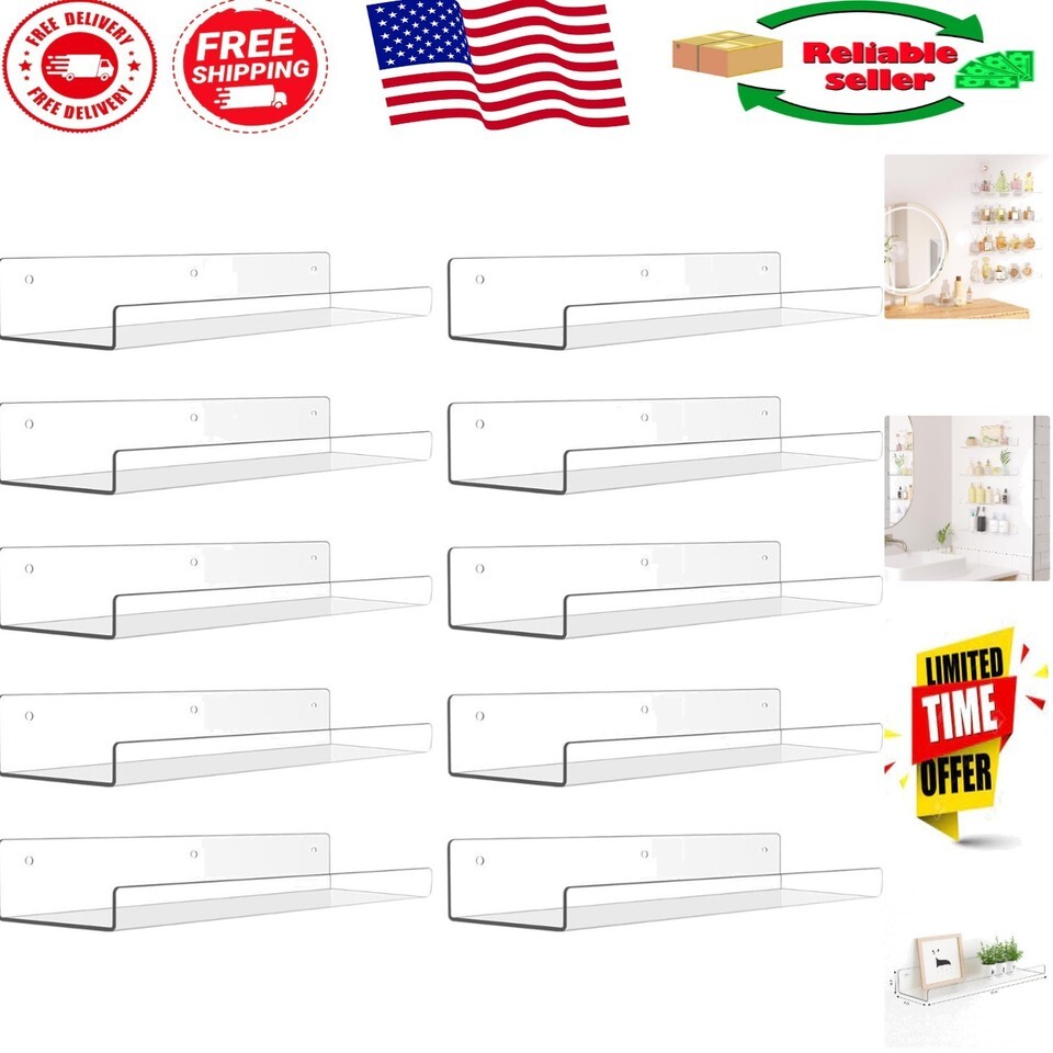 Transform your home into a stylish, organized haven with our Durable Space-Saving Acrylic Shelves. This exquisite 10-pack of 15" floating shelves not only enhances your decor but also revolutionizes your space management. Crafted from high-quality acrylic, they strike the perfect balance between elegance and functionality.