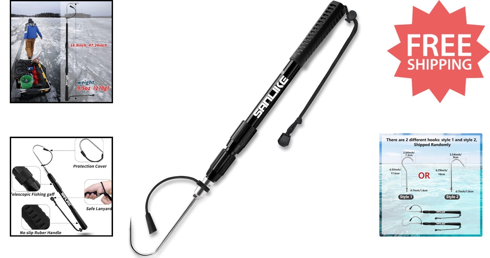 - Durable Telescopic Fish Gaff with Stainless Steel Hook - Perfect for Ice Fishing