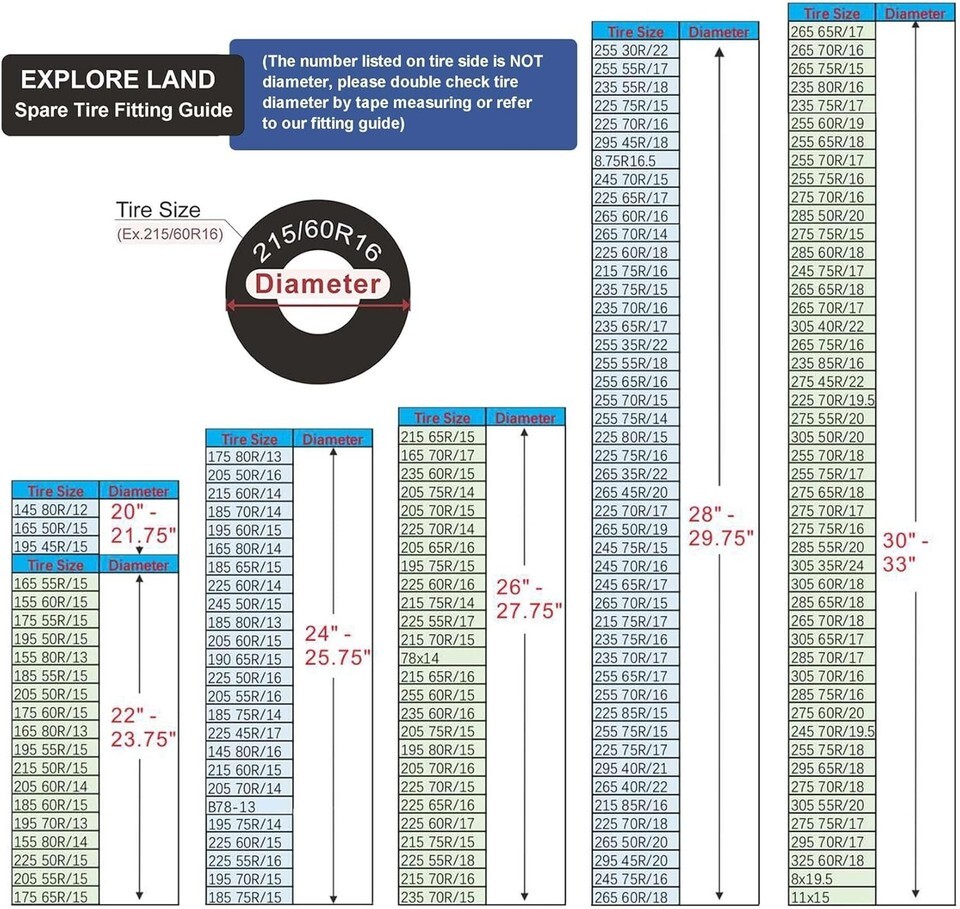 Universal Fit: Designed to fit tire diameters up to 33 inches. Please refer to our fitting guide picture for precise size selection.