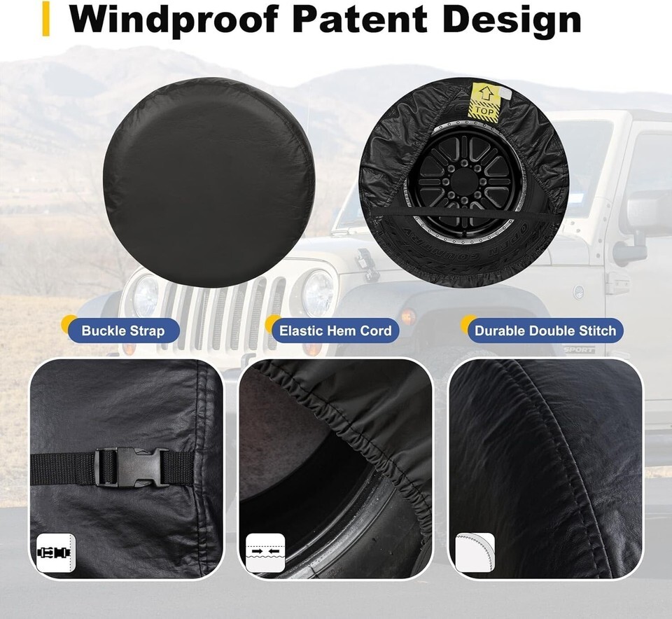 - Durable UV Protected Black Tire Cover for 30-33 Inch SUVs, Trailers, and Trucks
