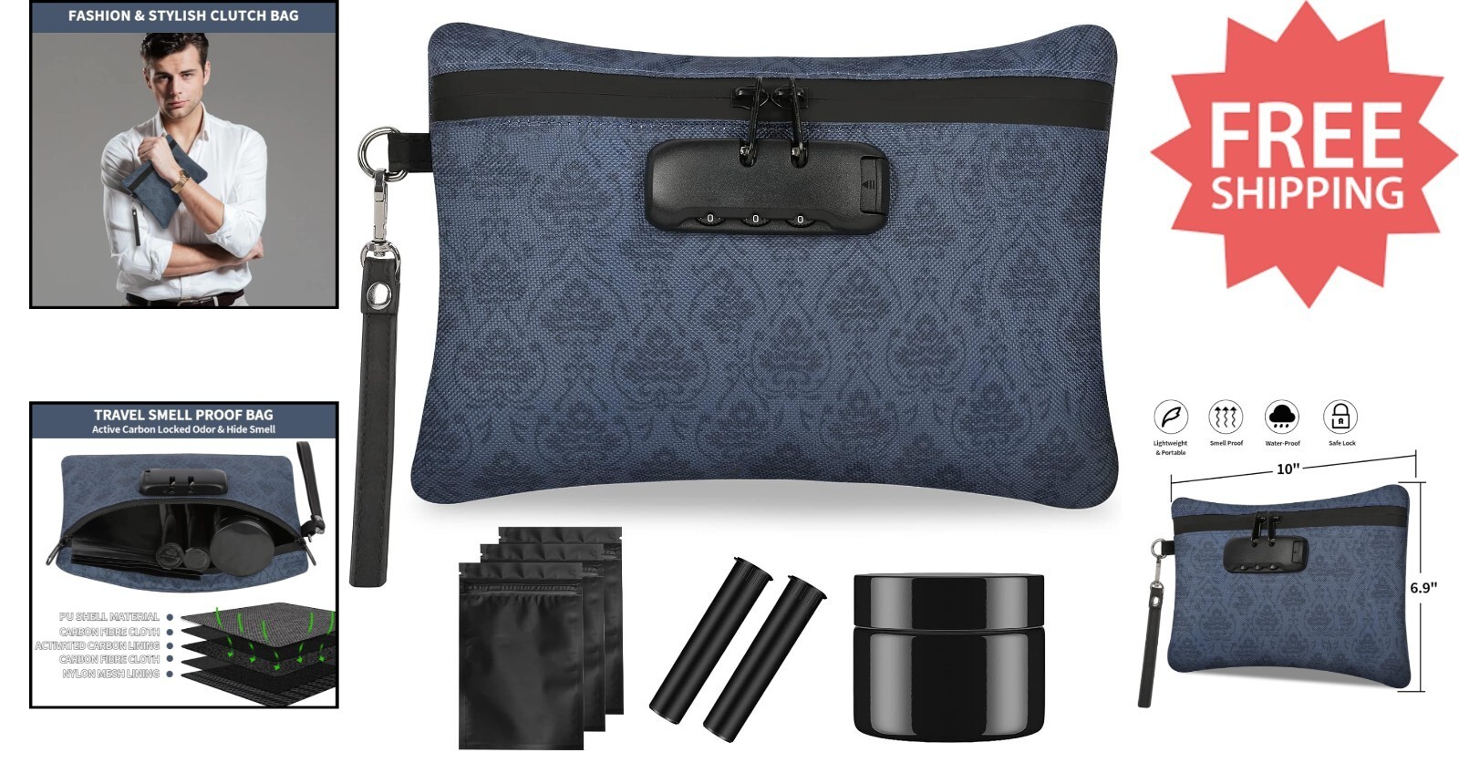 Discover the ultimate odor control solution with our advanced smell-proof bag. Crafted with thickened carbon fiber and filtering non-woven fabric, it effectively traps odors to keep your items fresh and secure. The strong Velcro closure ensures no scent escapes, while the complete set?including a 10 x 6.7 inch pouch, odor-proof baggies, tubes, a UV glass stash jar, and a convenient wrist strap?makes it versatile for various needs. Built with durable, waterproof 7-layer material and a heavy-duty sealed zipper, this case is perfect for storing coffee, teas, dried foods, or spices. Enhanced with a sturdy three-digit combination lock, it provides added security and theft protection, ideal for travelers and anyone needing to safeguard valuables. Its sleek, discreet design makes it suitable for everyday use and as a thoughtful gift for both men and women. Compact and stylish, it ensures your belongings remain odor-free and private on the go. Suitable for multiple purposes, from storing aromatic herbs to safeguarding cash and documents, this odor-proof case is a practical addition to your daily essentials.