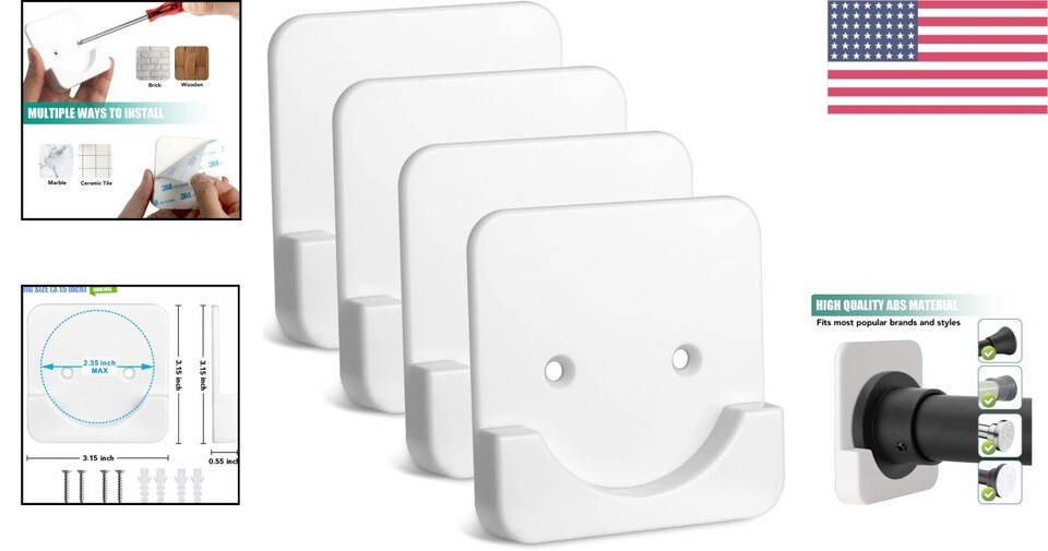 Durable White Acrylic Shower Curtain Tension Holders - 4 Pack Mount Retainers