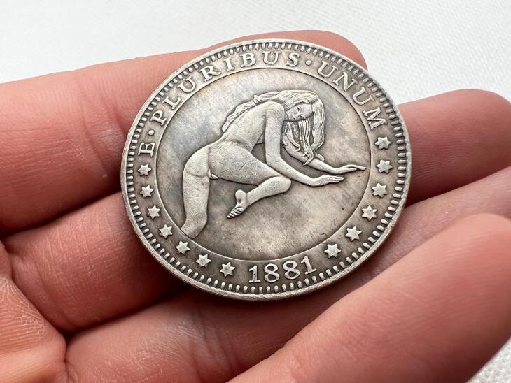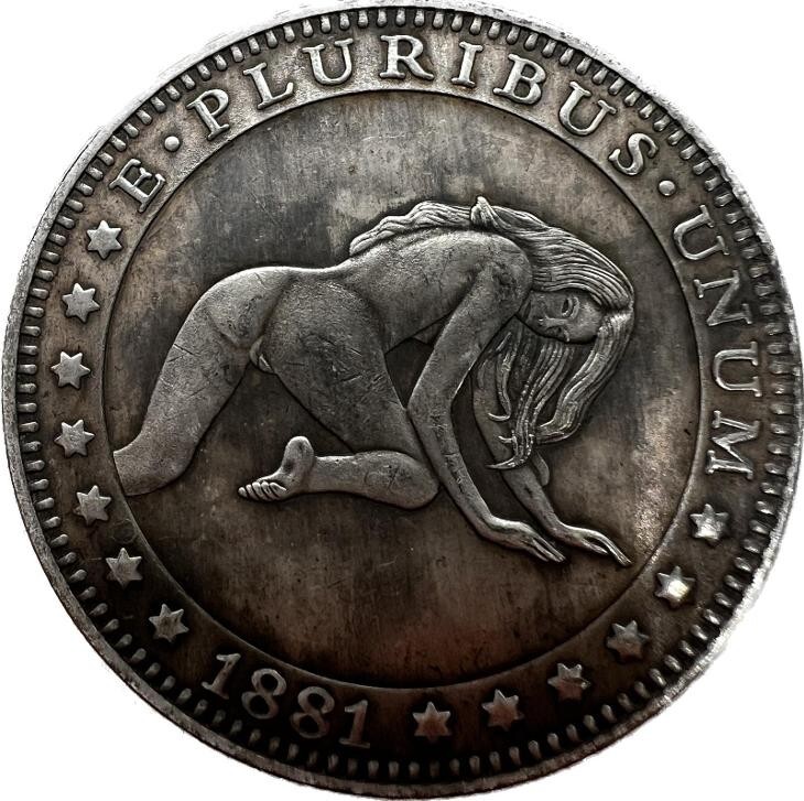 Discover a unique collector's item with the E Pluribus Unum Fantasy Coin - 1881 Girl Medal. This exquisite piece showcases intricate designs featuring depictions of nude women intertwined with themes of intimacy and mythology, making it a captivating addition to any collection. Crafted from high-quality zinc alloy, this medal is not only visually striking, but also holds historical significance and narrative value that reflect the cultures and societies that inspired its creation.Fantasy coins such as this one have long been sought after by collectors for their provocative nature and artistic craftsmanship. Many pieces exhibit elaborate patterns and scenes that draw from both classical and contemporary influences, enriching the collector's experience. With a blend of aesthetic allure and cultural storytelling, this medal serves as an intriguing conversation starter and a testament to the artistry of its time.Explore the enchanting world of collectible medals and embrace the allure of the E Pluribus Unum Fantasy Coin - 1881 Girl Medal. Should you have any questions or require more information, please feel free to inquire.