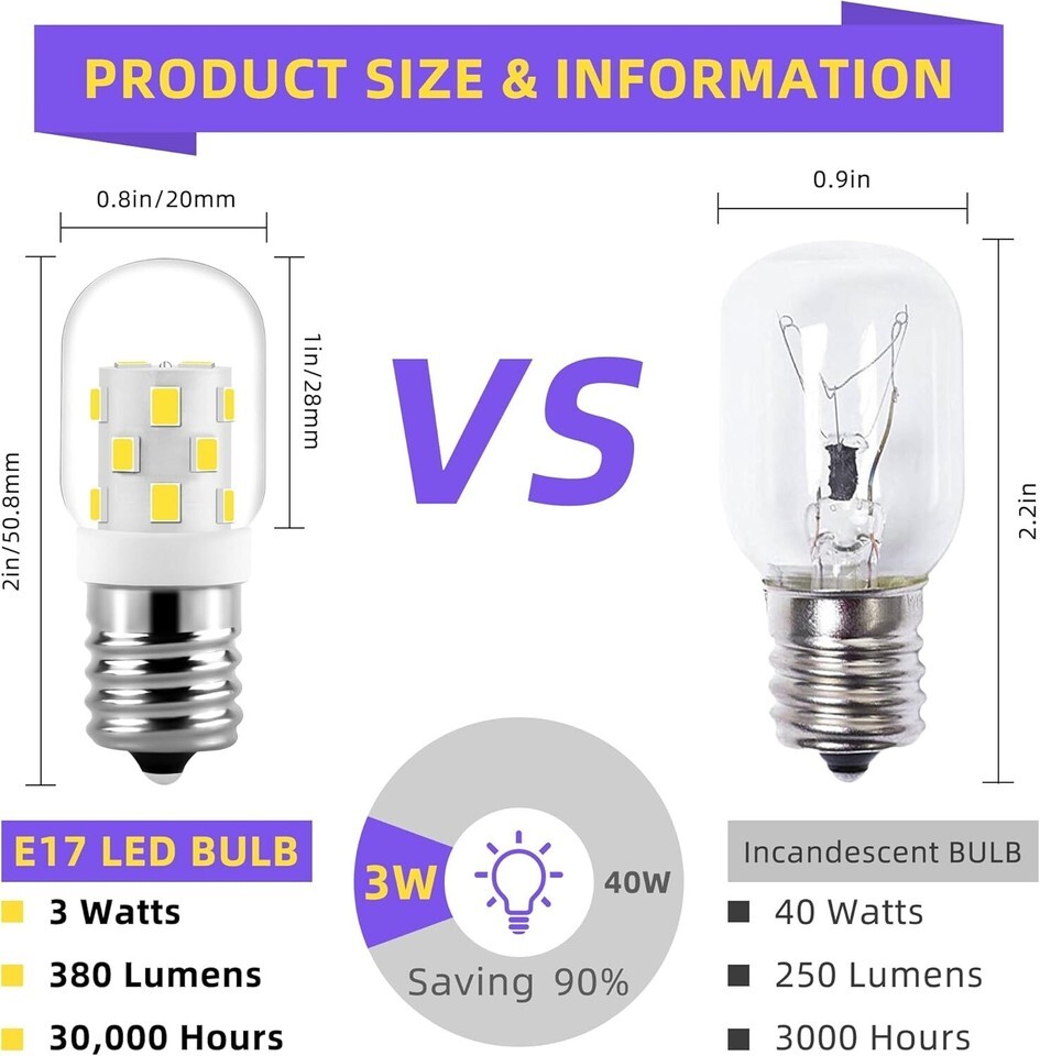 Transform your everyday appliances with the brilliance of our E17 LED Light Bulb, designed to replace traditional 40W incandescent bulbs while providing exceptional energy savings.