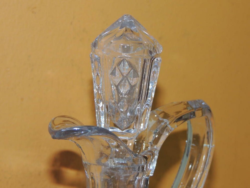 - EAPG Glass Cruet 6" diamond grid pointed oval antique hand blown Flint Unique