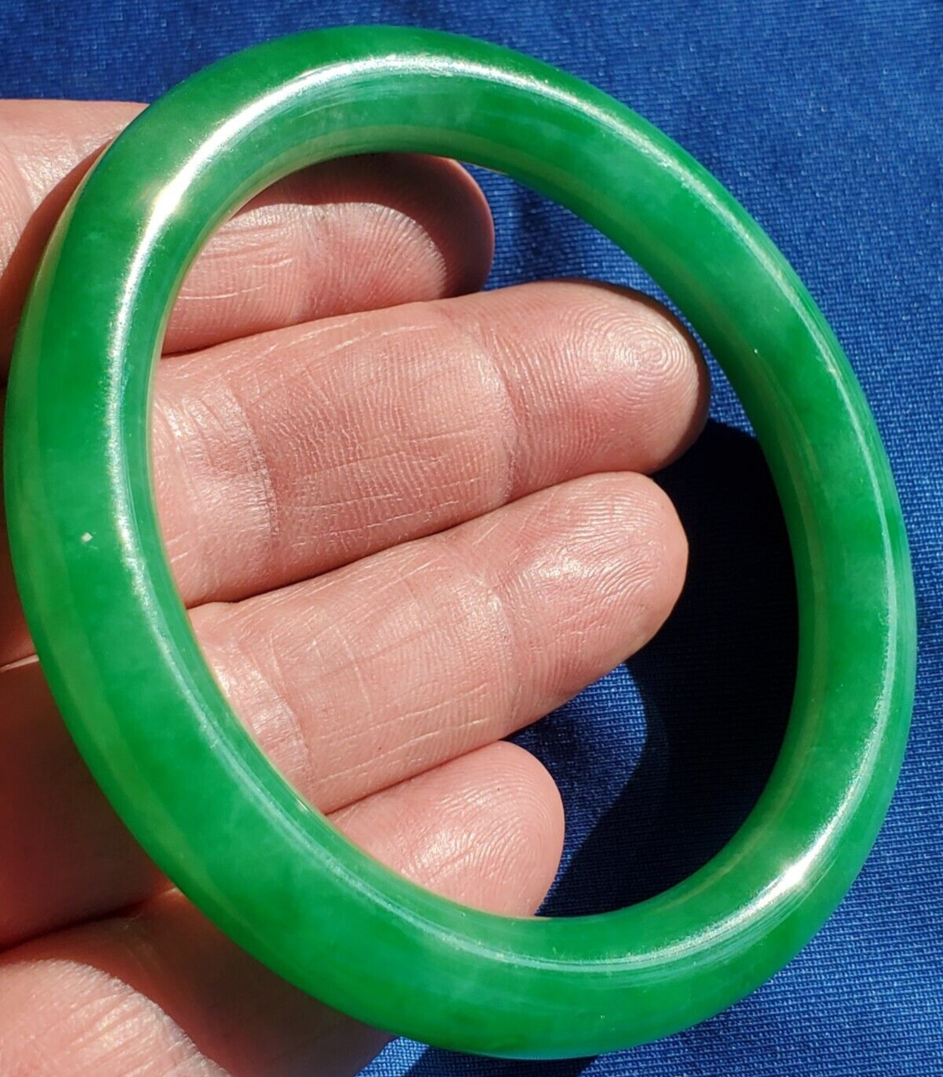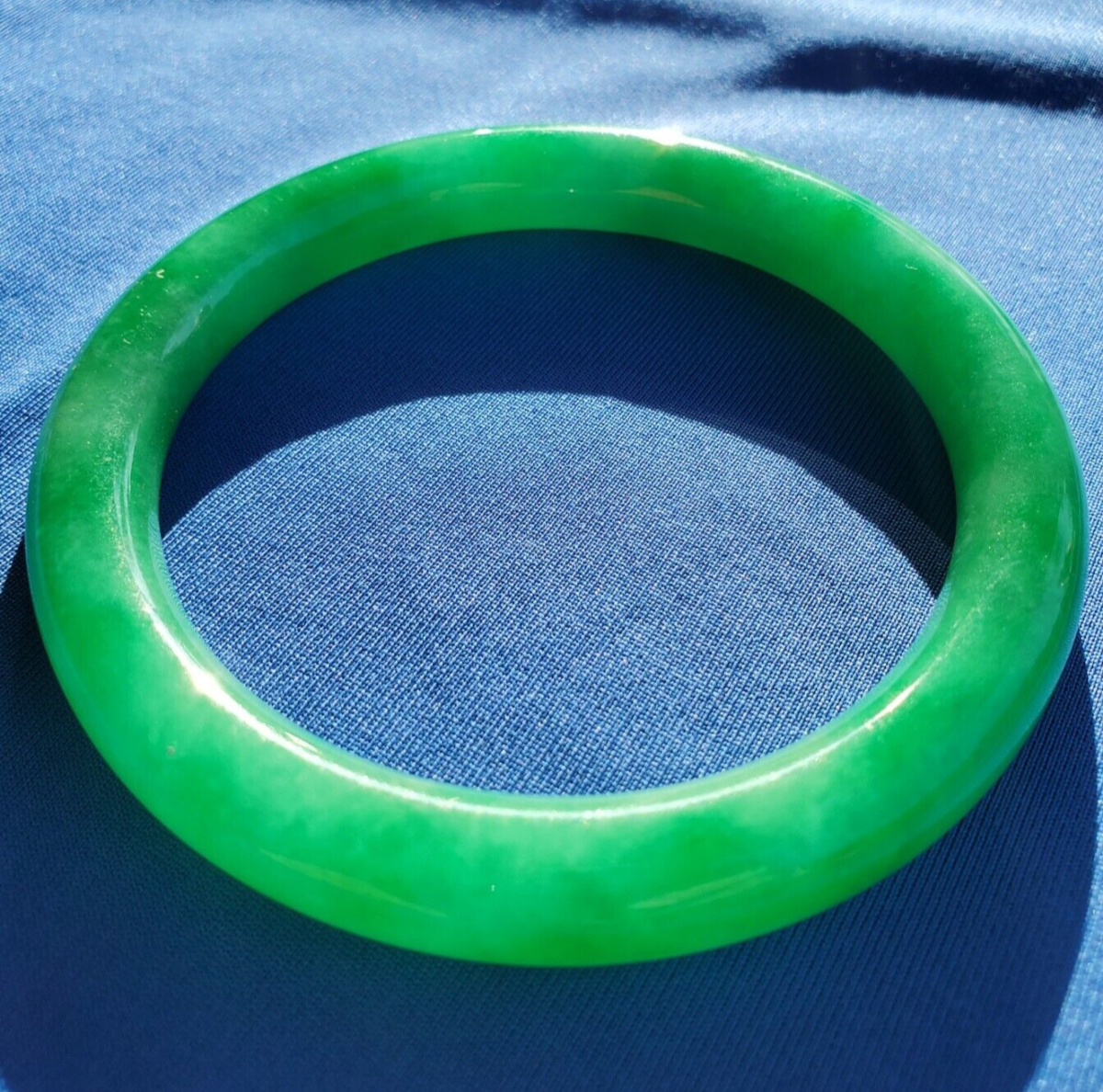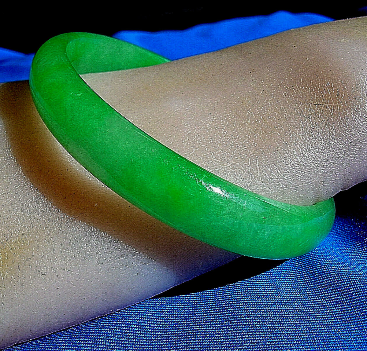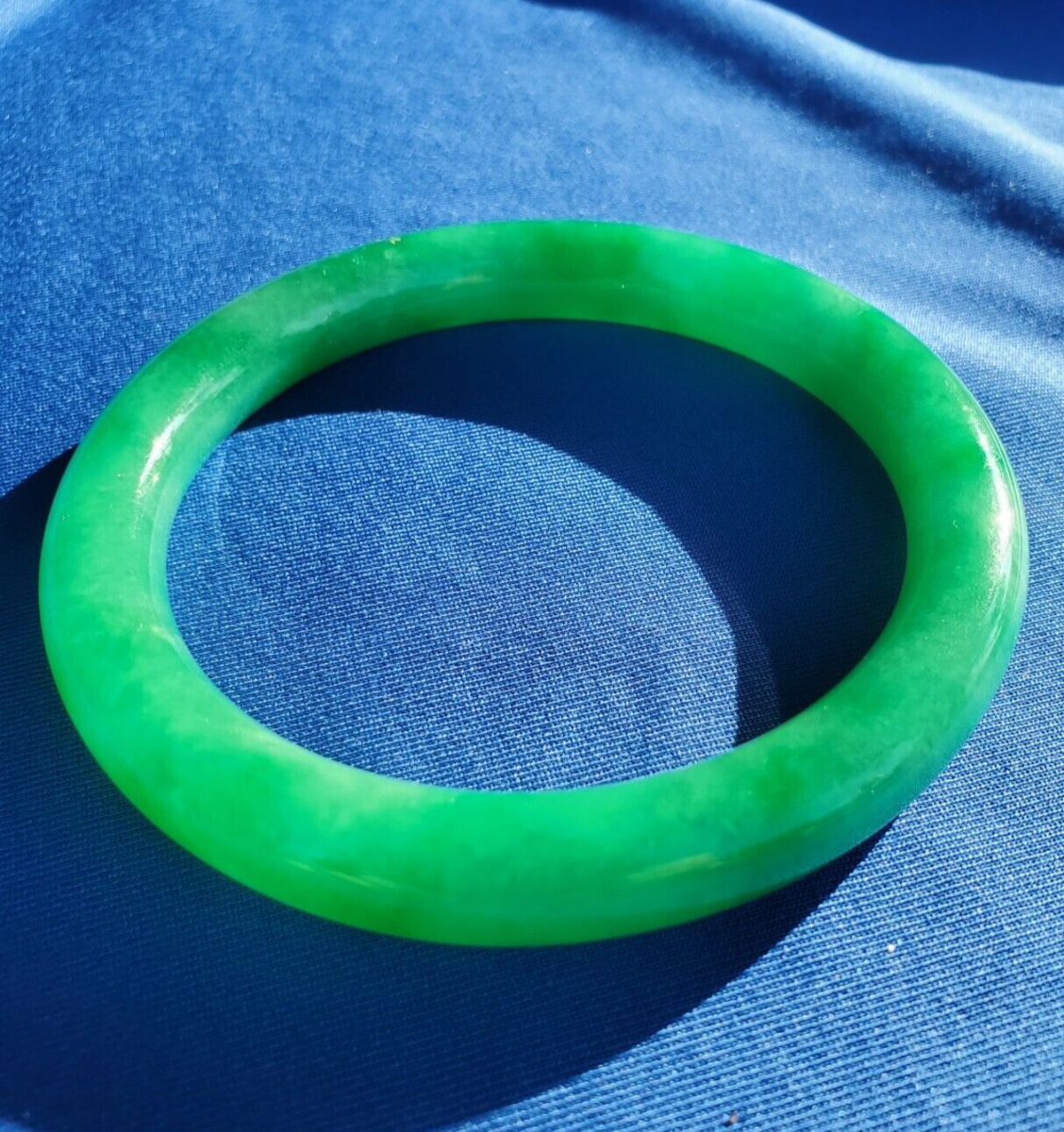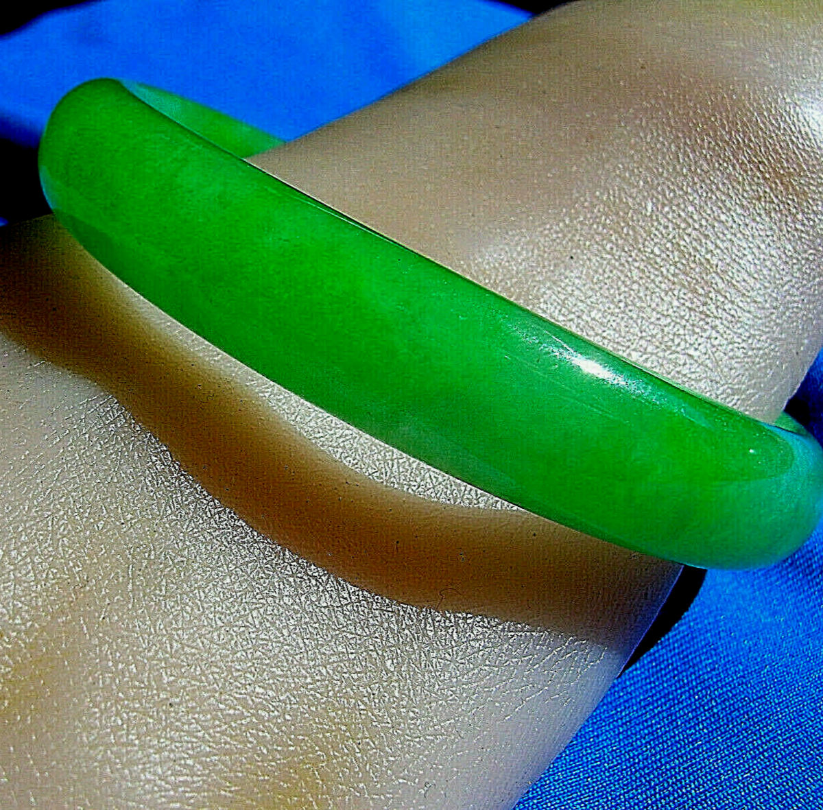 - EARTH MINED Green Jadeite Jade Deco Antique Bangle Old Semi Translucent Bracelet