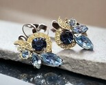 EISENBERG ICE Gold Tone Blue Rhinestone Clip Earrings Vintage Signed