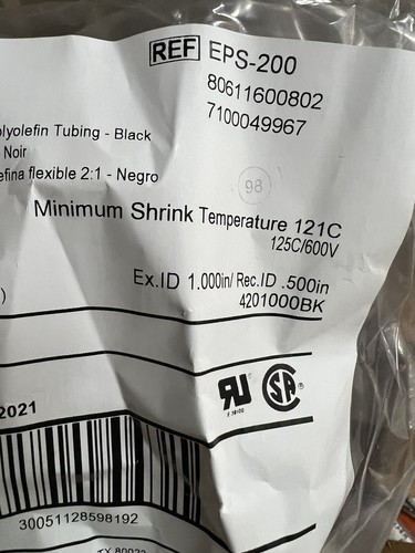 - EPS200 2.1 1in x 48 in (25,40MM X1219,20MM) Tubing Black Lot of 24