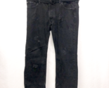 Excellent Used Condition. Distressed Look. Black. Straight Fit. Belt included. Size 38 X 30 measures as such, actual measurements in photos. Please see all photos, as they are part of item condition/description. We are a smoke free, pet friendly home. Have a great day!