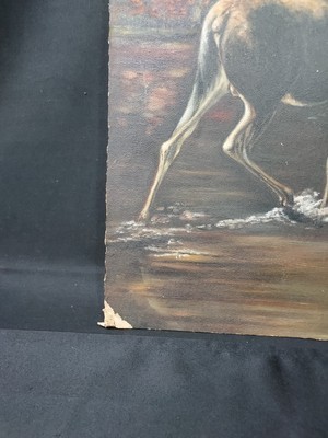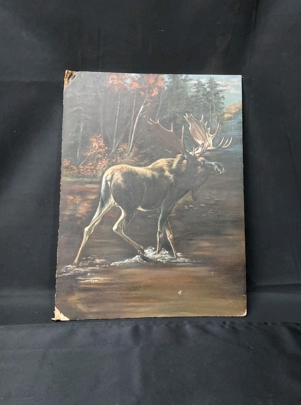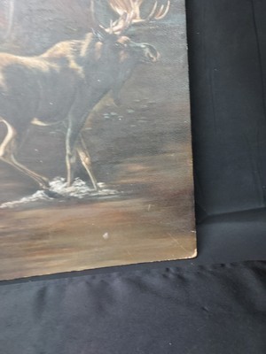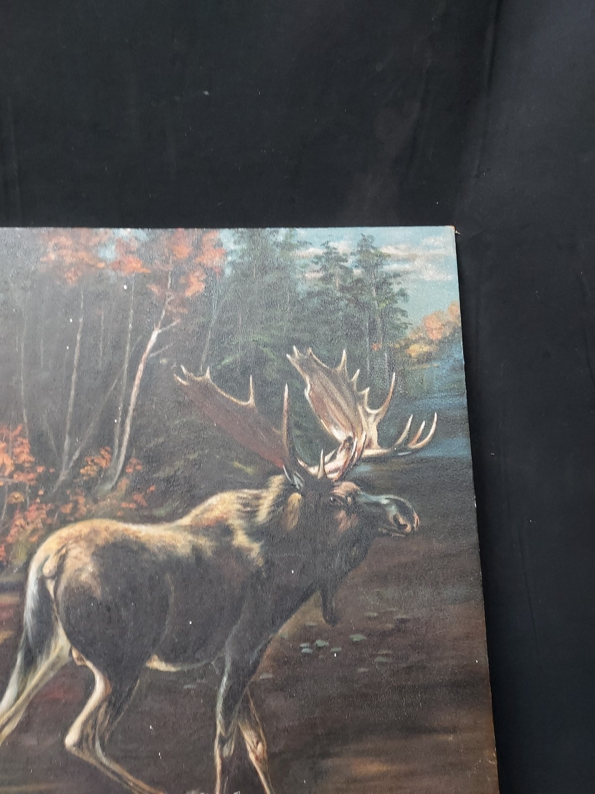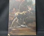 Primary image for Early 1900s Folk Art Oil Painting Moose Wildlife Scene Found In Northern Vermont